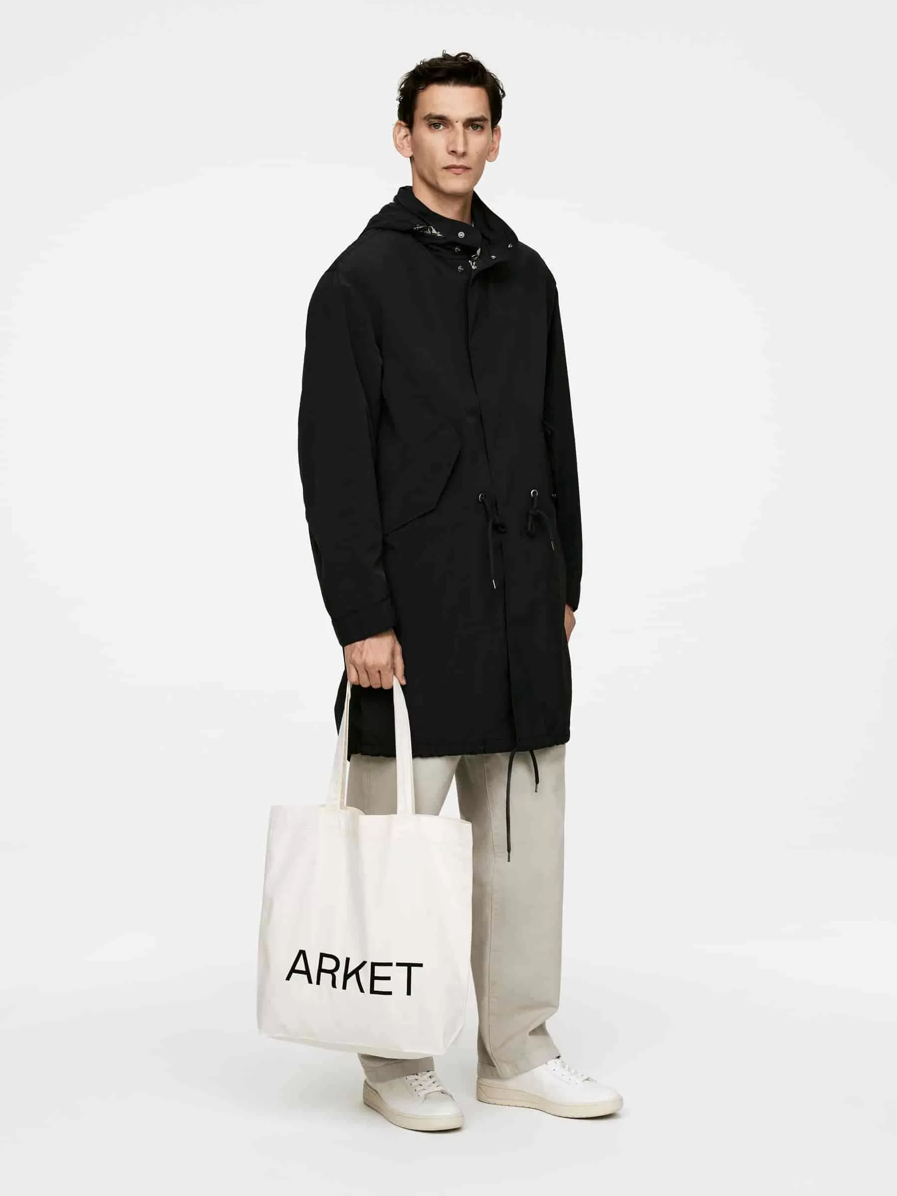 Vår omtyckta väska är gjord av en slitstark canvasväv, med en tryckt ARKET-logotyp framtill. Mått 40 x 33 x 10 cm.