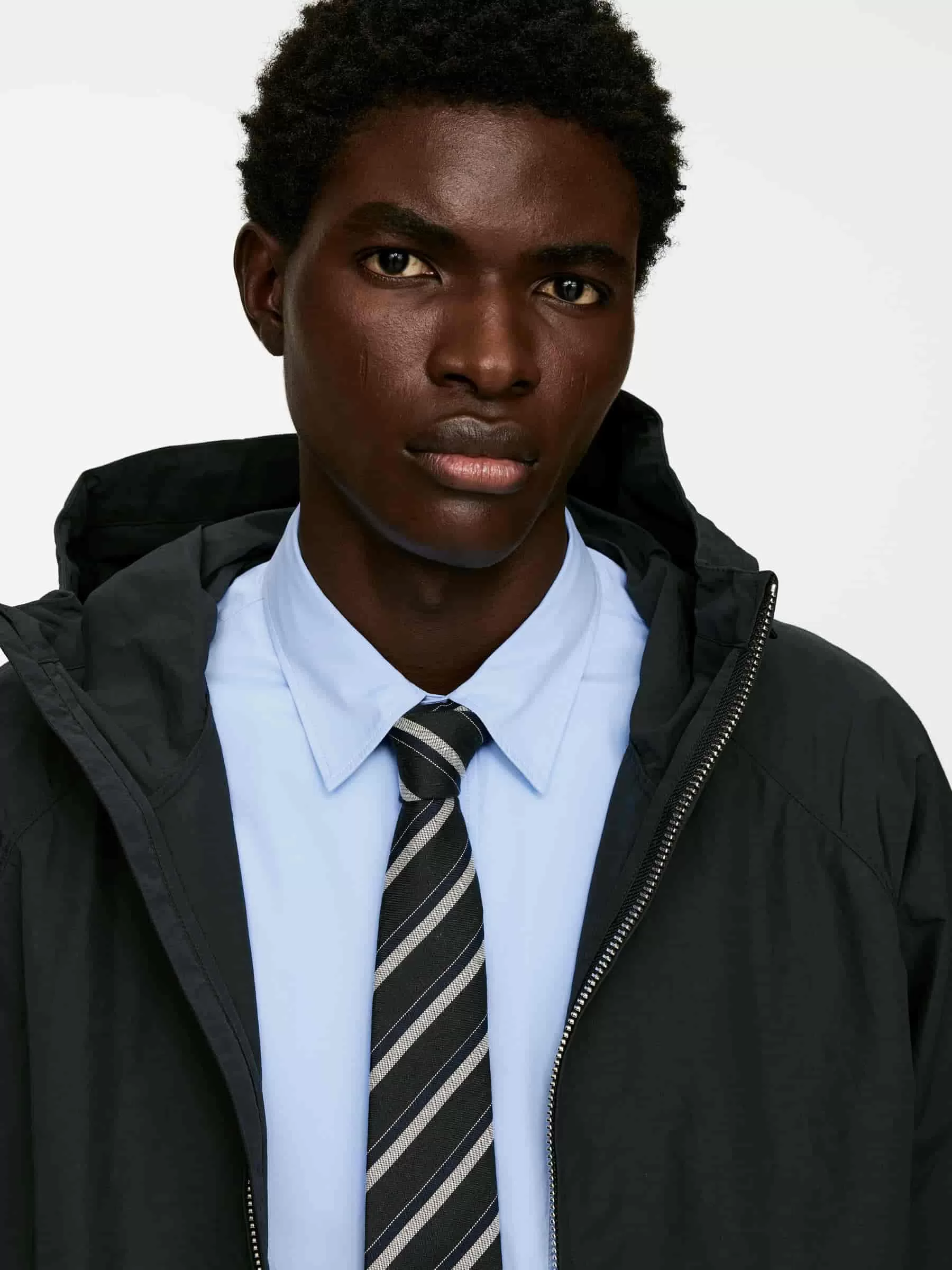 Skjorta sydd av poplintyg av bomull. Designad med en enkel bröstficka och manschetter med knäppning. Avslappnad passform.