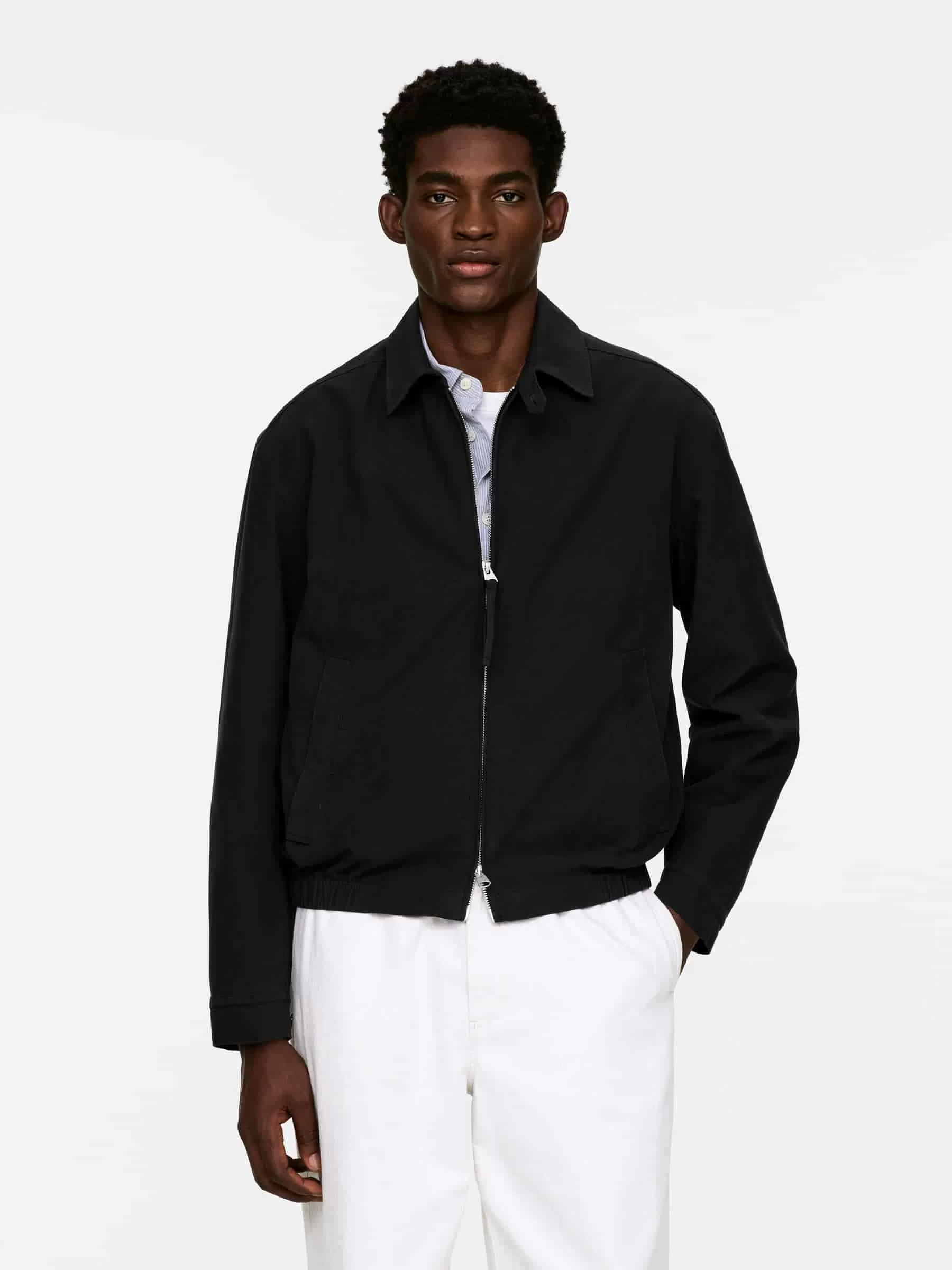 Blouson i bomullstwill. Klipp för en normal passform med resår i nederkant. Jackan är stylad med vanlig krage, tvåvägsdragkedja fram och sneda passpoalfickor med dold tryckknapp. Manschetter med knäppning. Två innerfickor. Helfodrad.