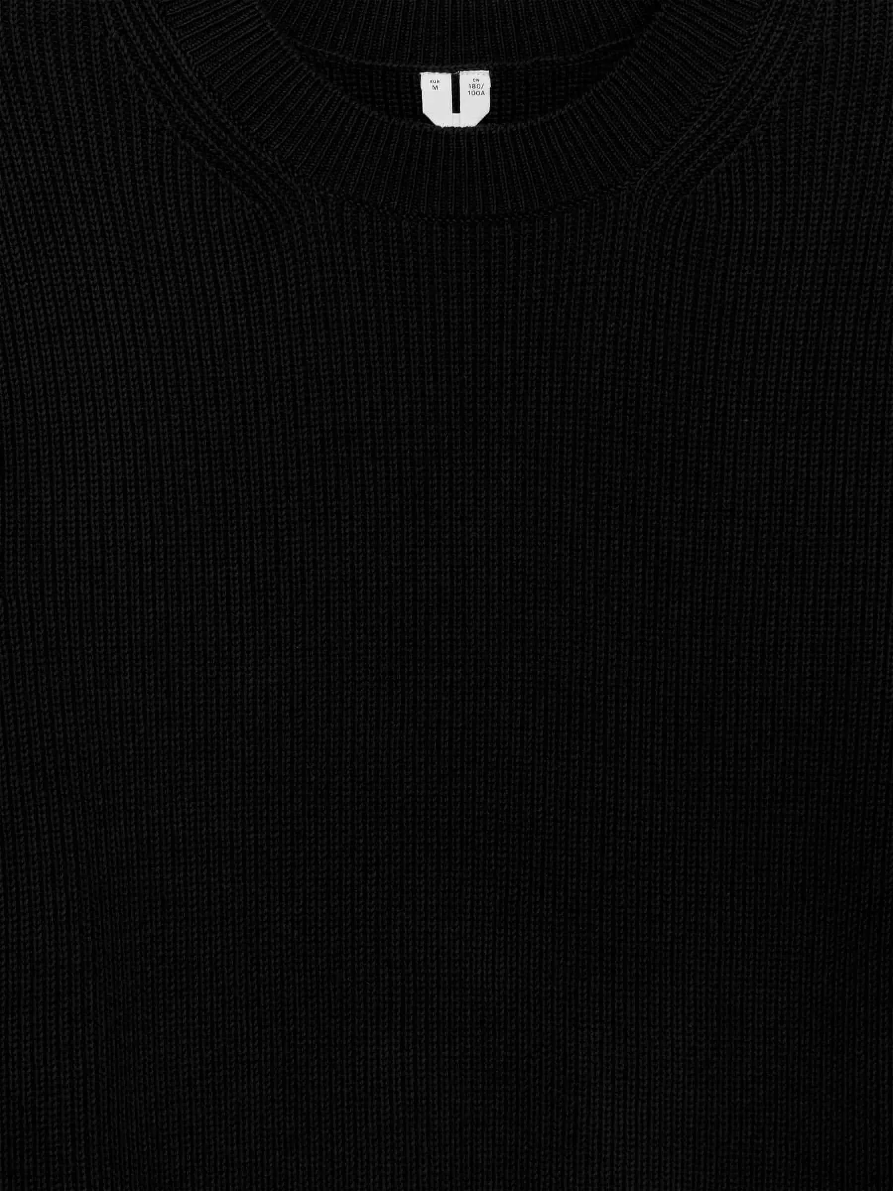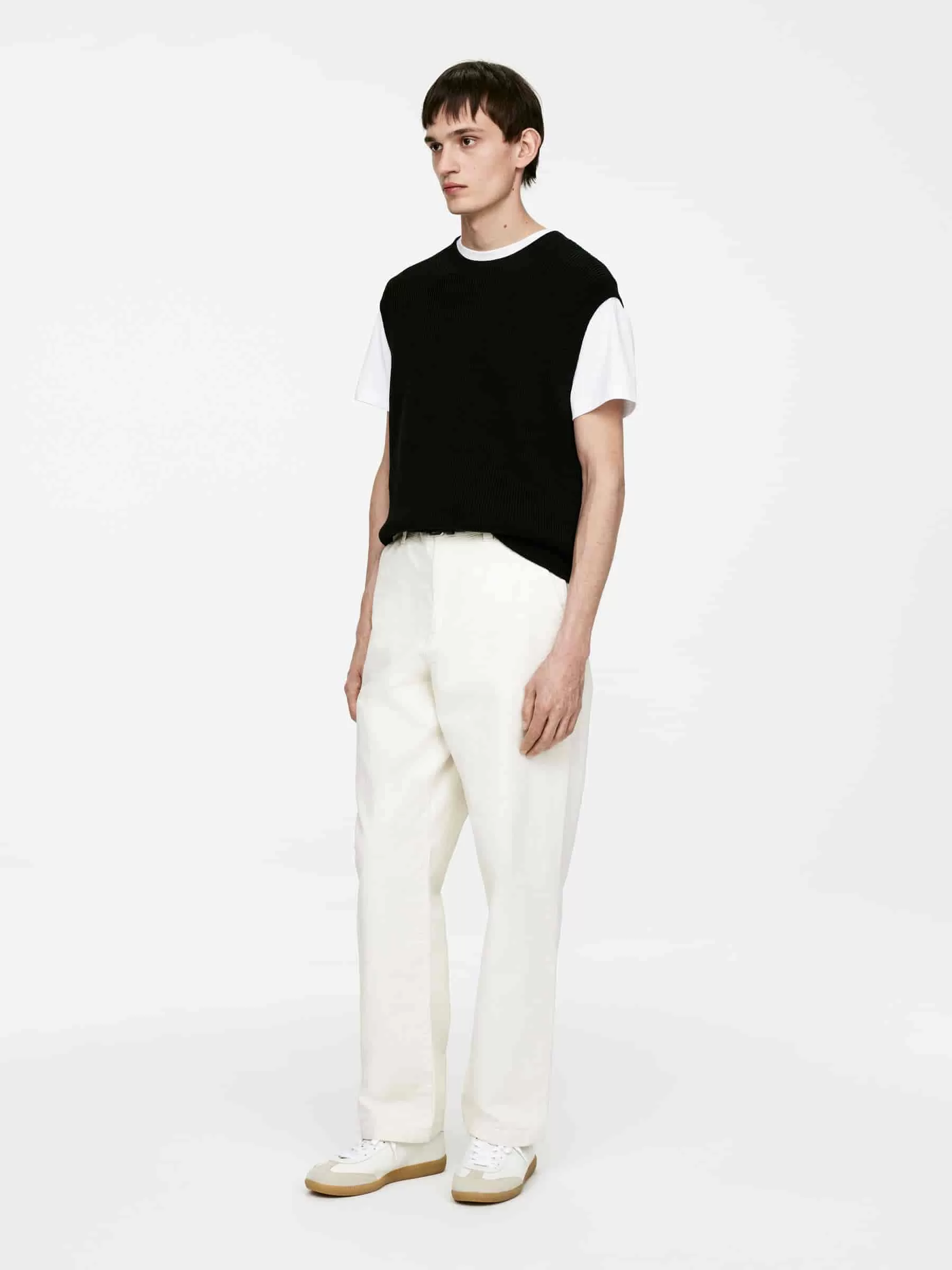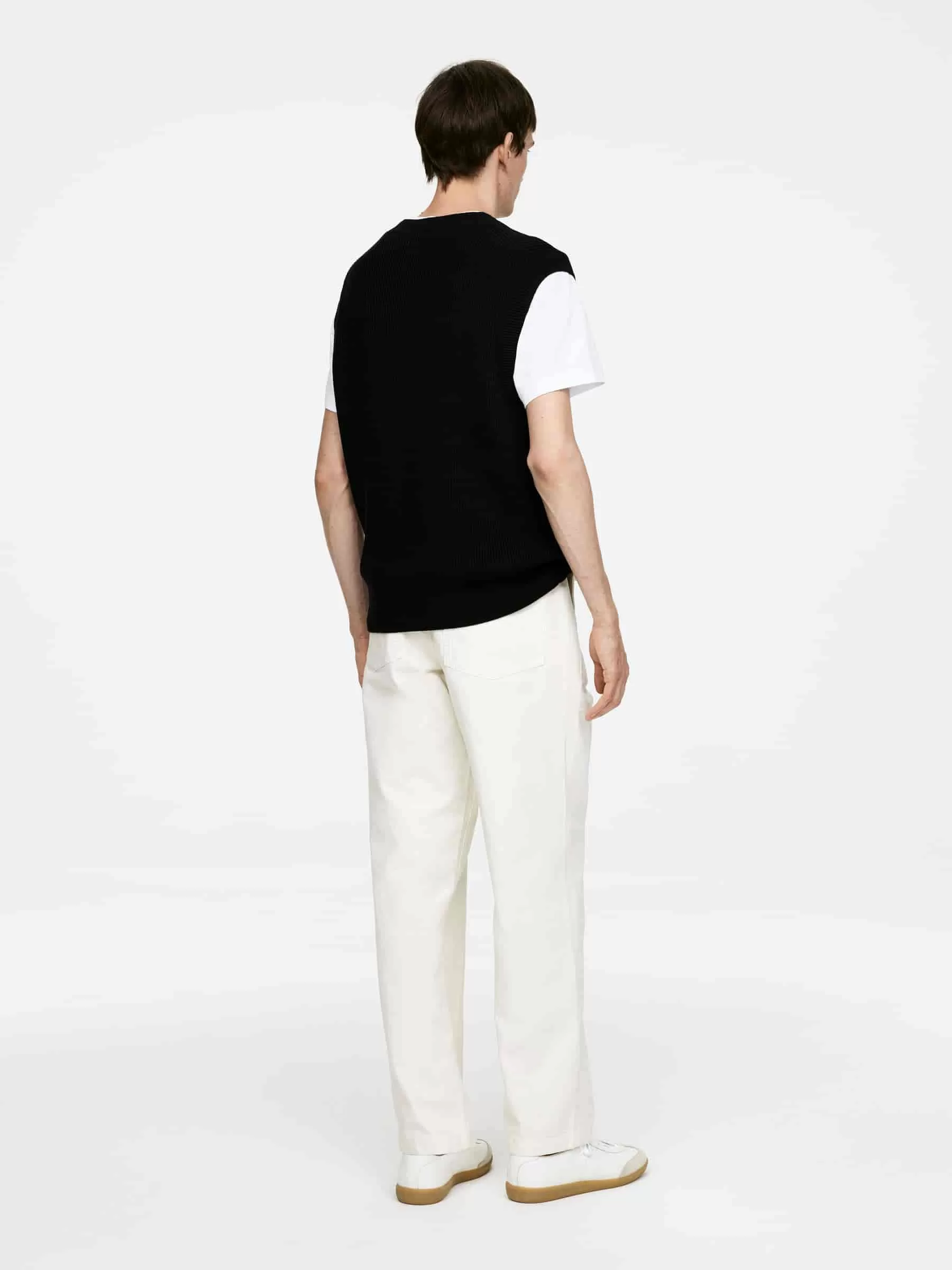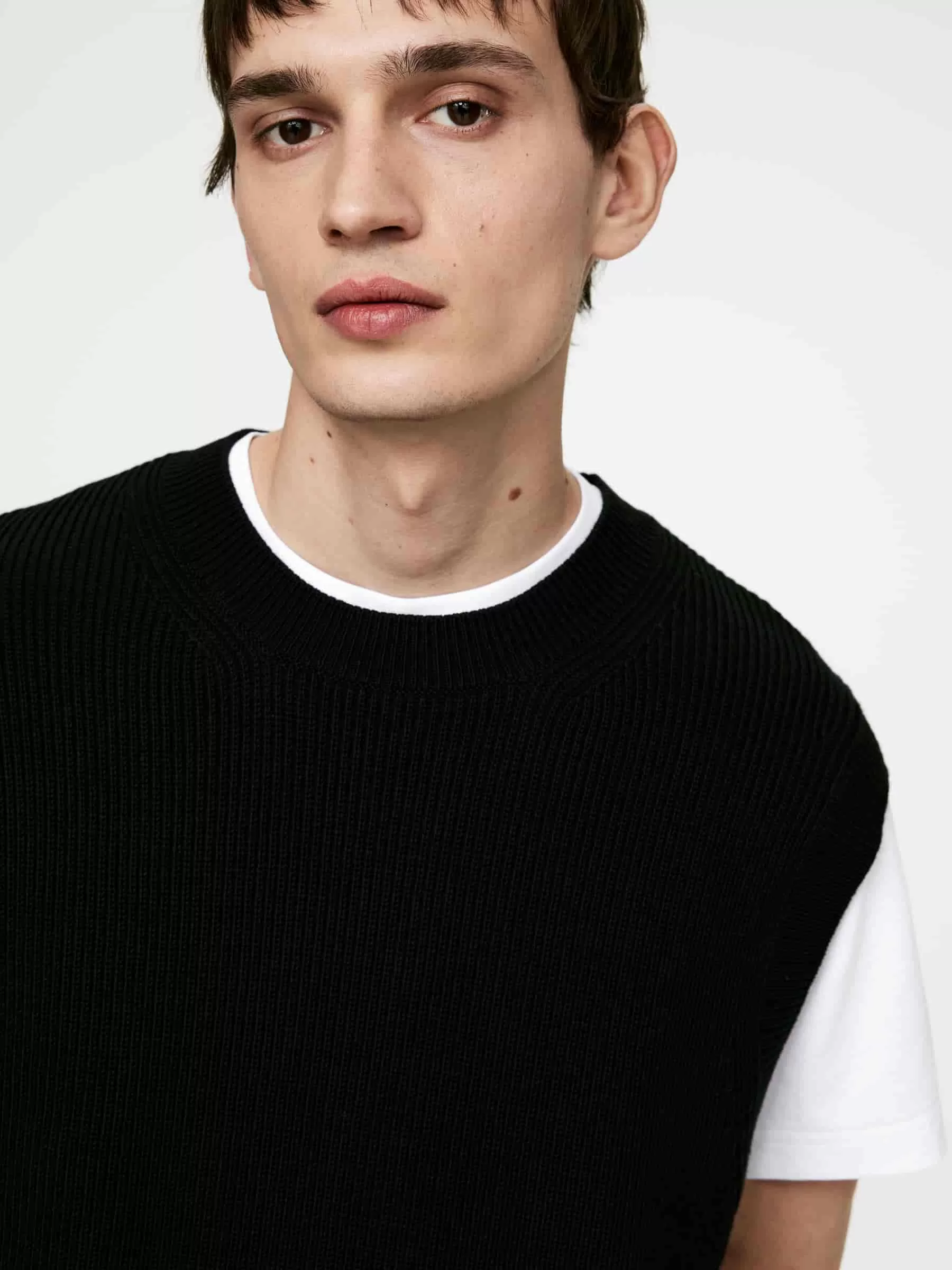 Bomullsväst stickad i en halv koftsöm. Designad med ribbade kant och en avslappnad passform.
