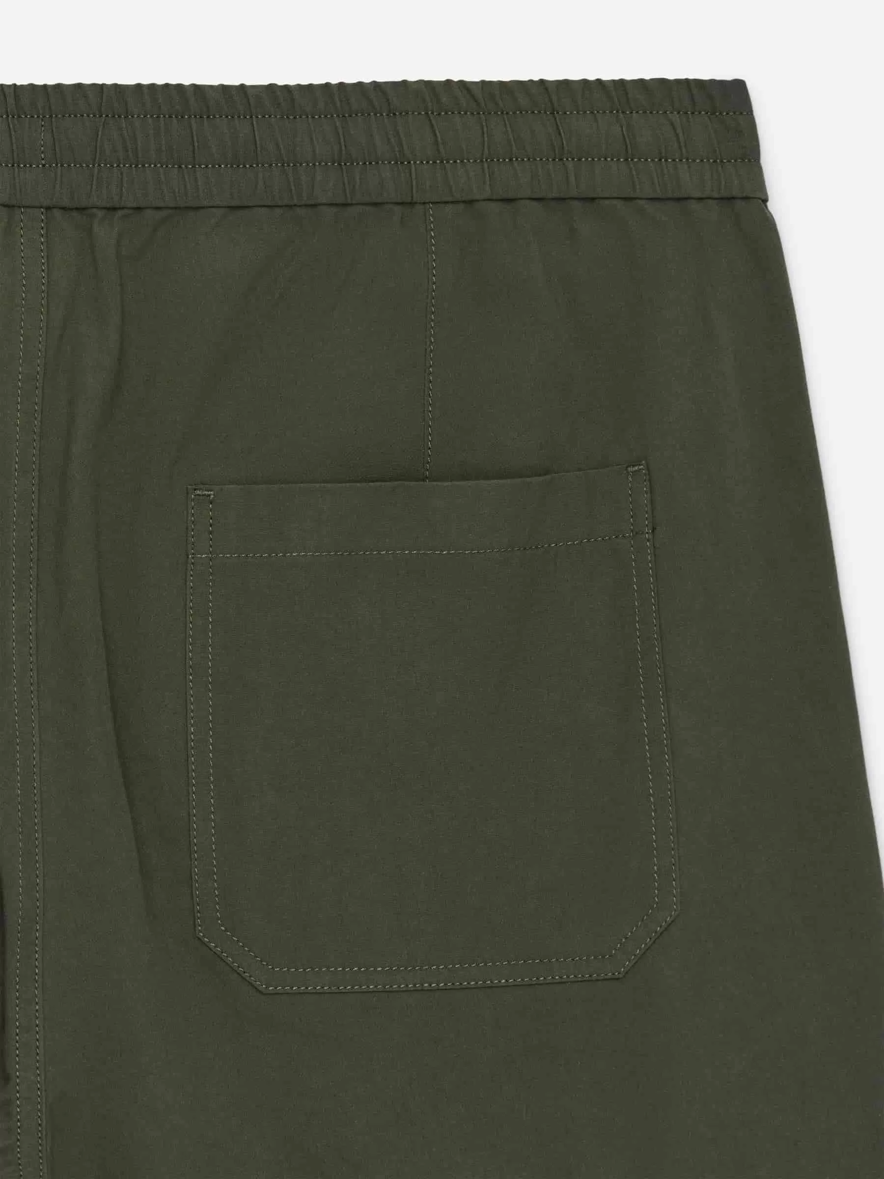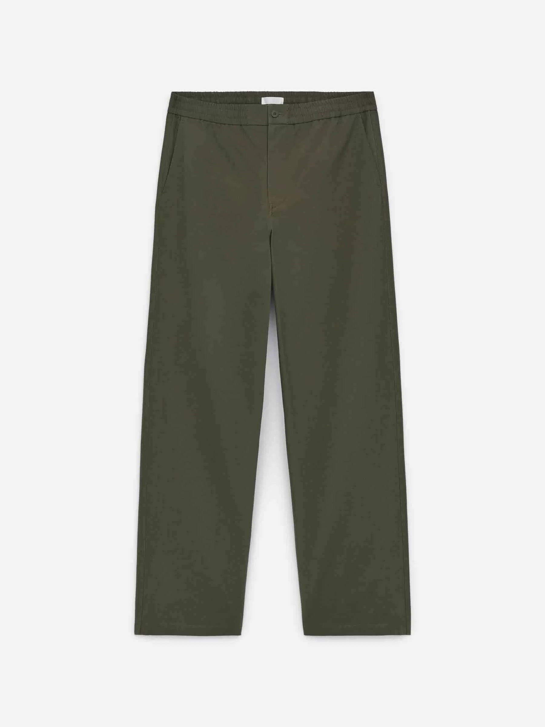 Bomullsbyxor med dragsko på insidan och resår i midjan. Knäppning och gylf med dragkedja. Klipp för en normal passform med raka ben. Snedställda framfickor och lappfickor bak.