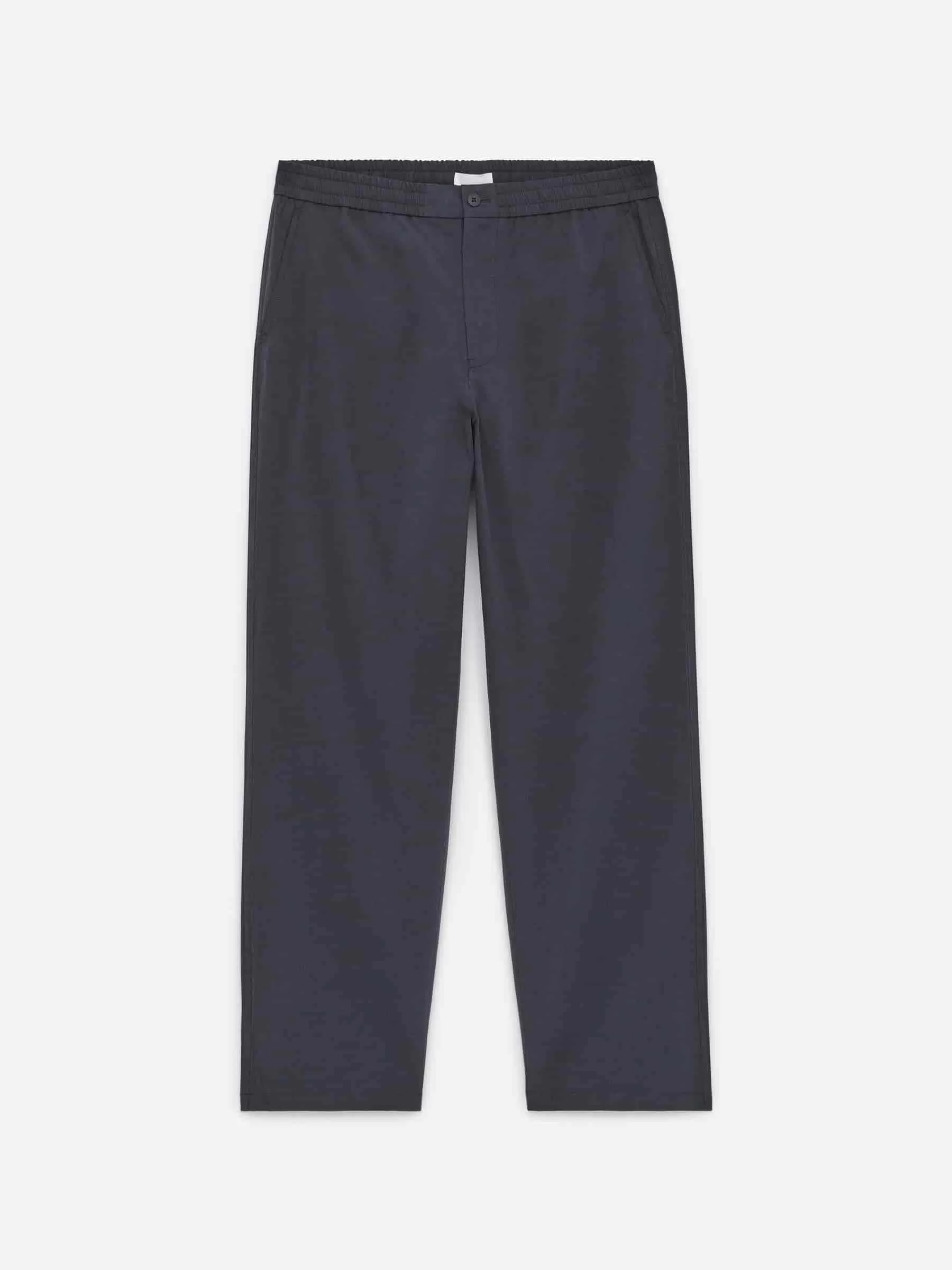Bomullsbyxor med dragsko på insidan och resår i midjan. Knäppning och gylf med dragkedja. Klipp för en normal passform med raka ben. Snedställda framfickor och lappfickor bak.