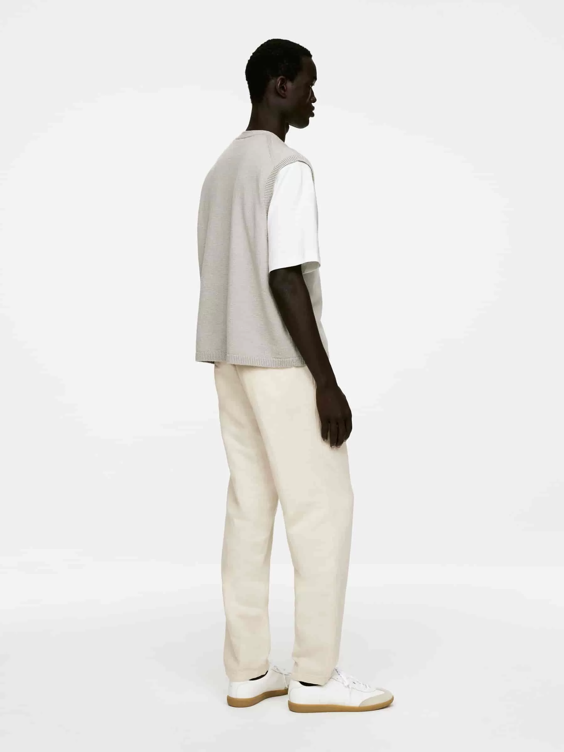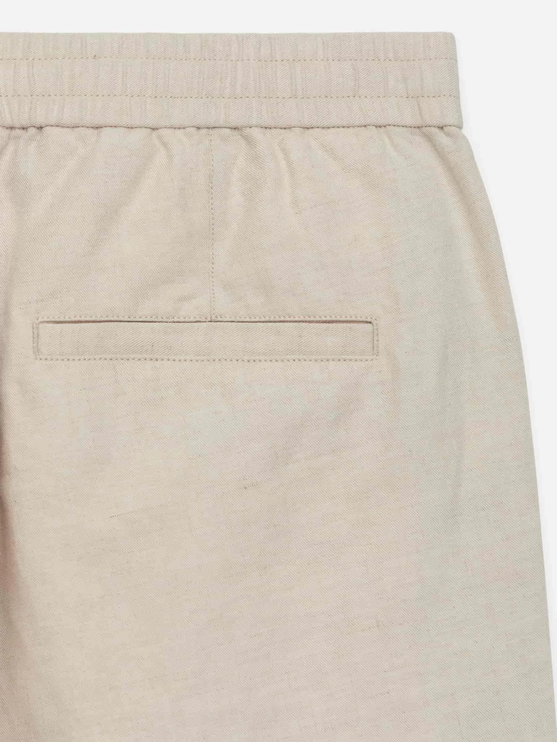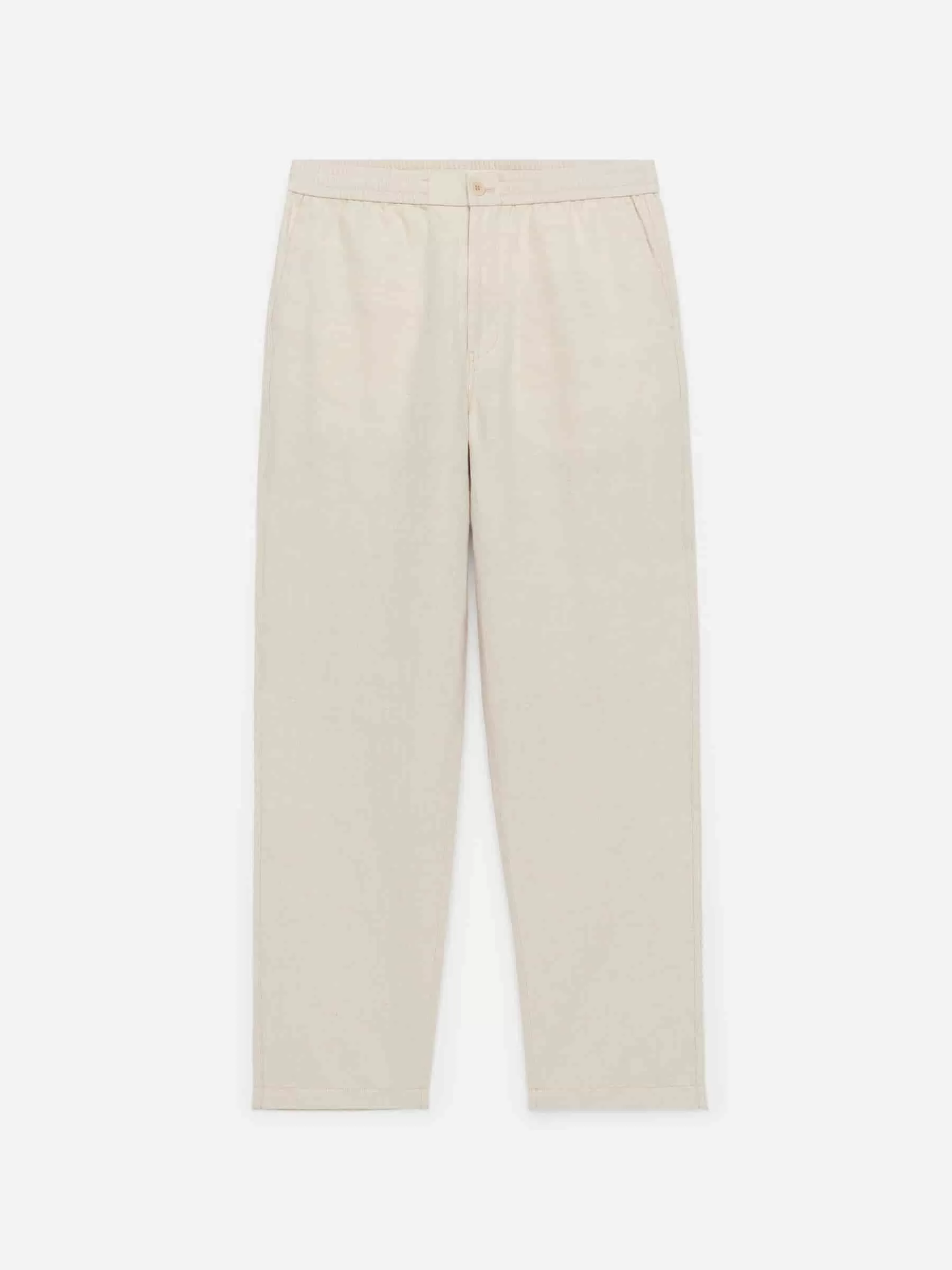 Byxor sydda av en linneblandning. Detaljerad med resår i midjan med dragsko på insidan, knappstängning och gylf med dragkedja. Snedställda fickor fram och passpoalfickor bak. Normal passform.