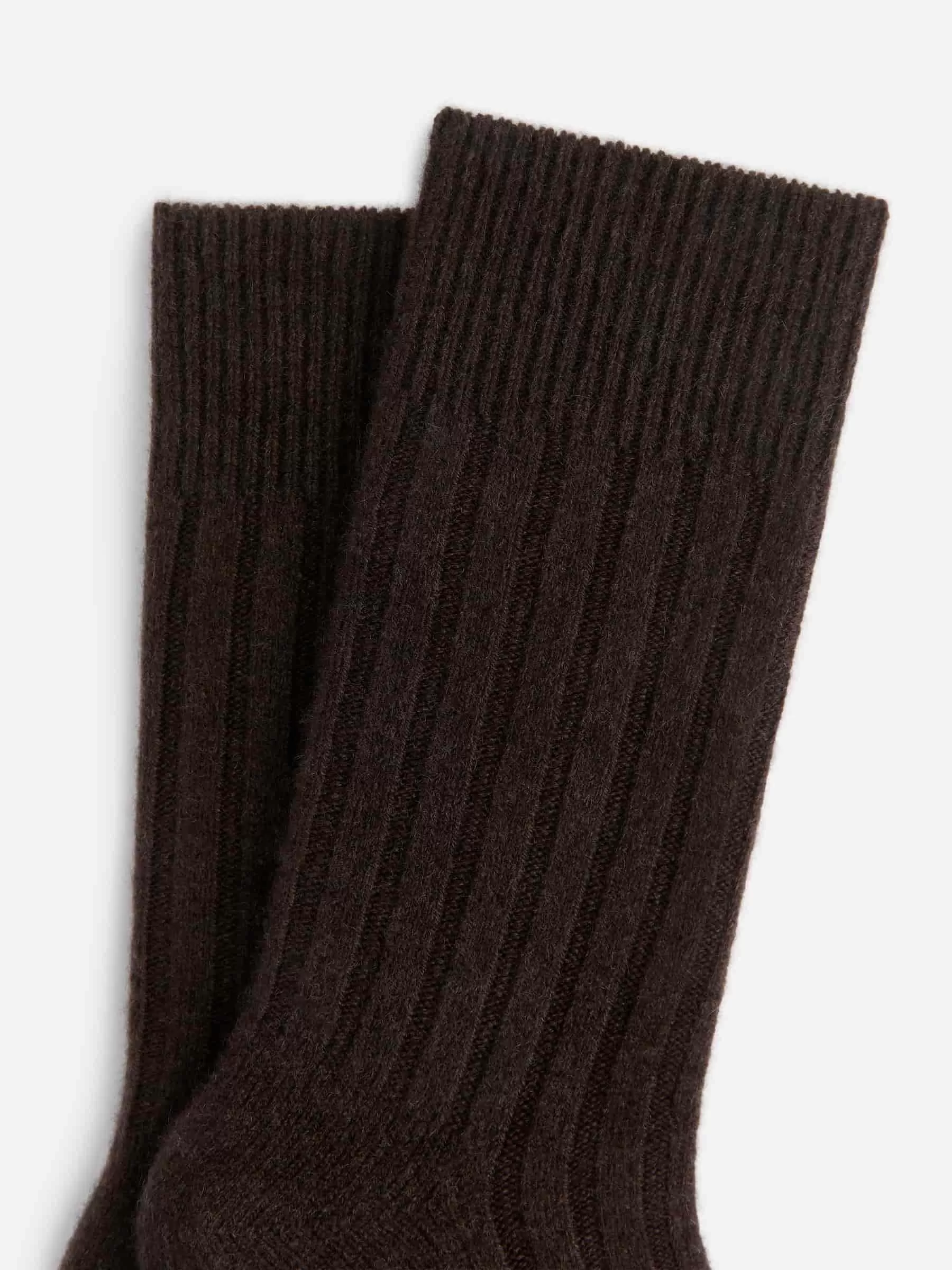 Mjuka strumpor stickade i en kashmirblandning. Ribbstickade skaft.