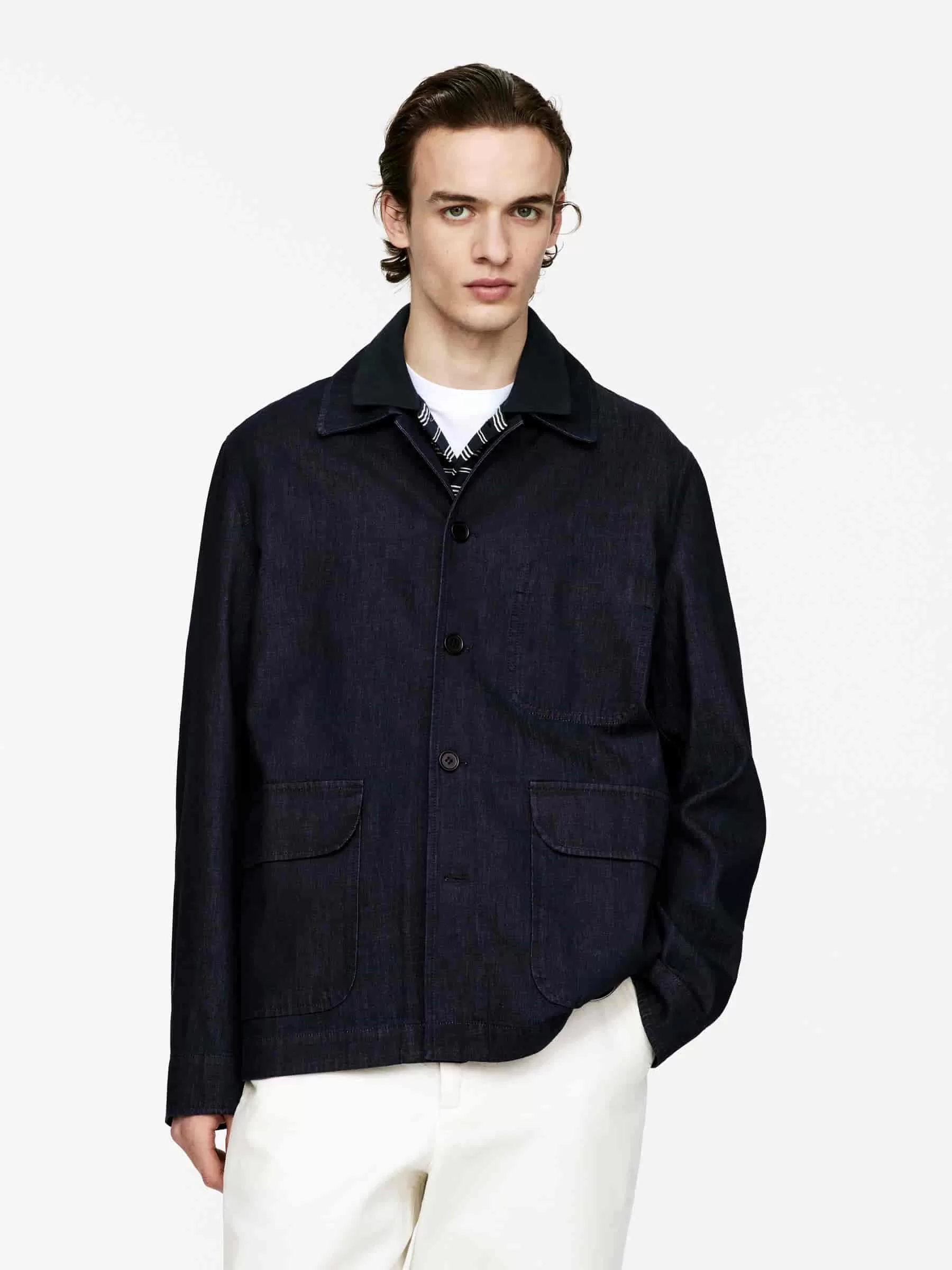 Jansjacka skuren för en avslappnad passform. Stylad med vanlig krage, knäppning fram. Två patchfickor med lock och en enkel bröstficka. Justerbara ärmslut med knäppning. Innerficka.