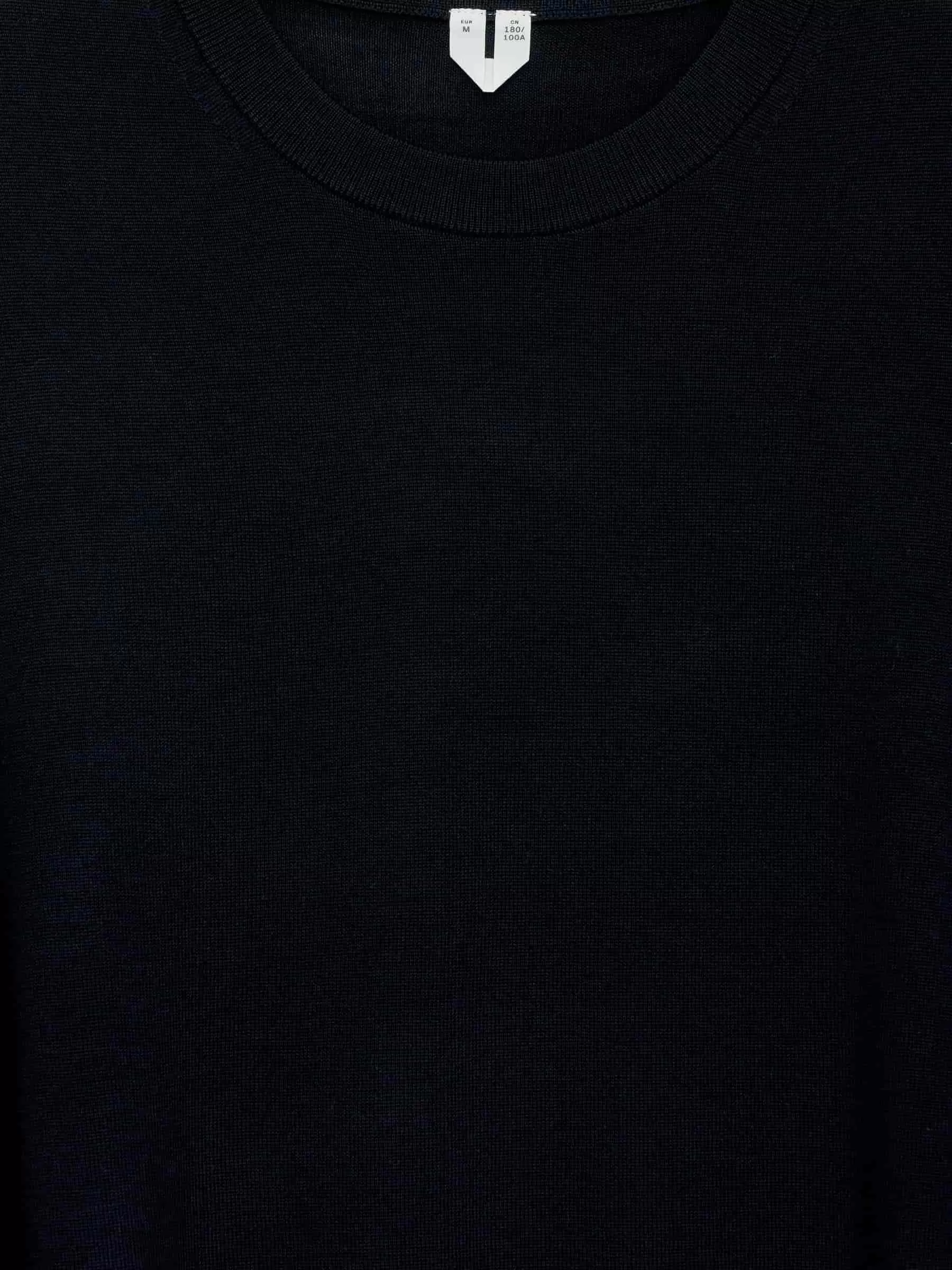 Finstickad tröja i mjuk merinoull. En klassisk rund hals med ribbade detaljer. Normal passform.