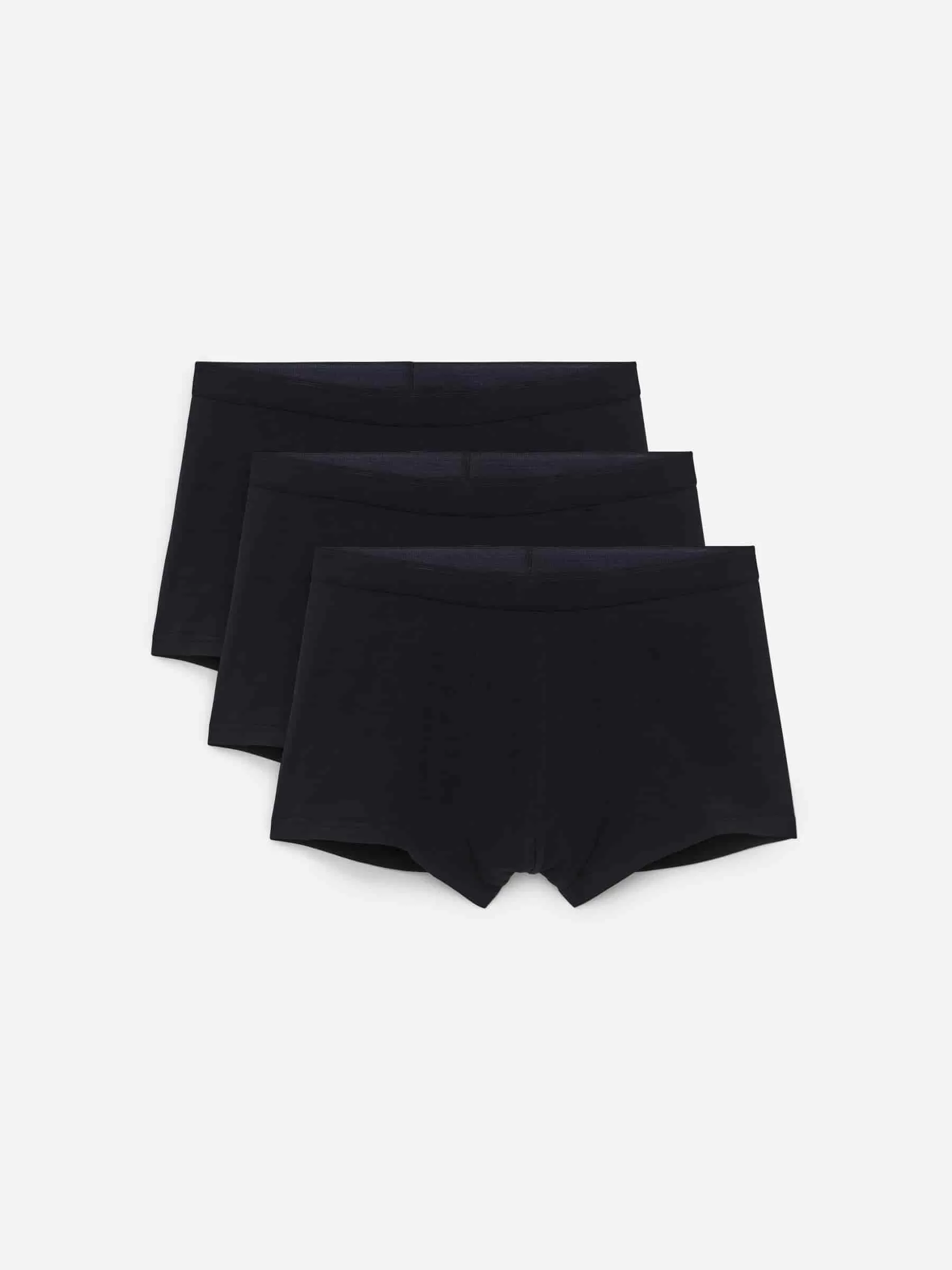Klassiska trunks gjorda av högkvalitativ bomullsjersey. En stil med korta ben med resår i midjan och fodrad framsida. Säljes i set om 3 par.