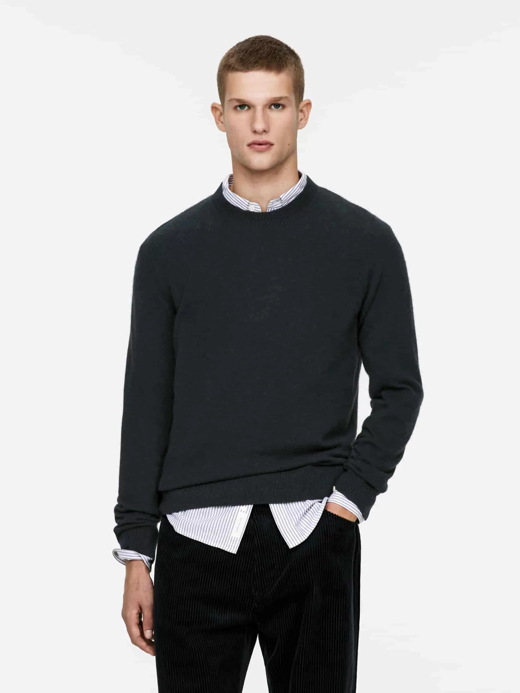Finstickad tröja gjord av en mjuk blandning av kashmir och ull. En klassisk crew-neck-stil i normal passform, med ribbstickade detaljer. Denna stil innehåller 25 % RWS-ull, certifierad av kontrollförbundet 815347. Produkter certifierade enligt Responsible Wool Standard (RWS) innehåller ullfibrer från gårdar som är oberoende certifierade enligt kraven på djurskydd och markförvaltning.