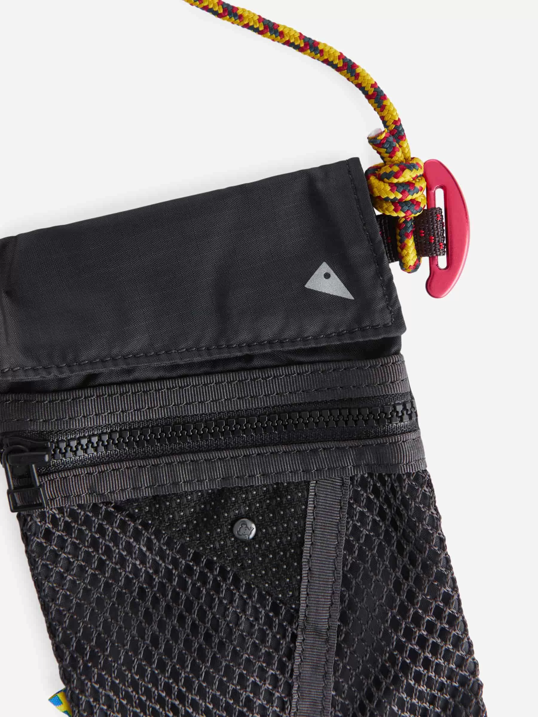 Algir Lanyard Pocket från svenska bergsklättrarmärket Klättermusen är tillverkad av 100 % återvunnen polyamid med Econyl®-garn. Detaljerad med en justerbar sladd för att hänga över axeln eller runt halsen och två byglar att fästa på ryggsäcken. Kardborrelocksöppning, liten ficka på insidan och meshficka på utsidan.