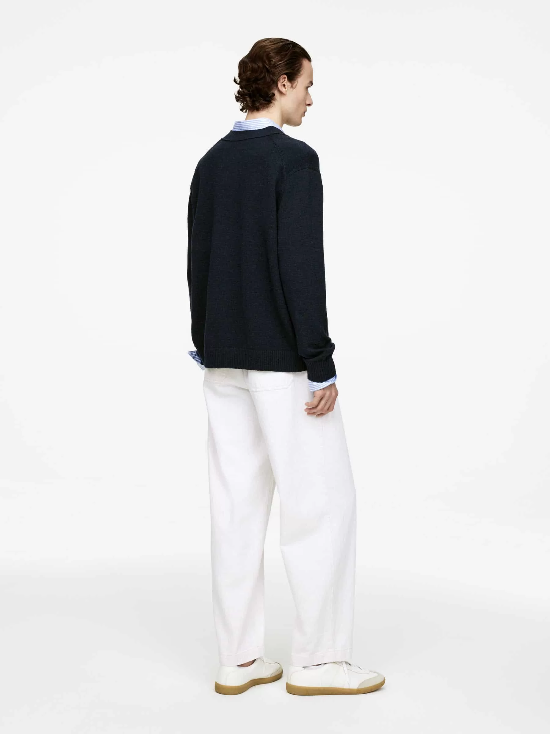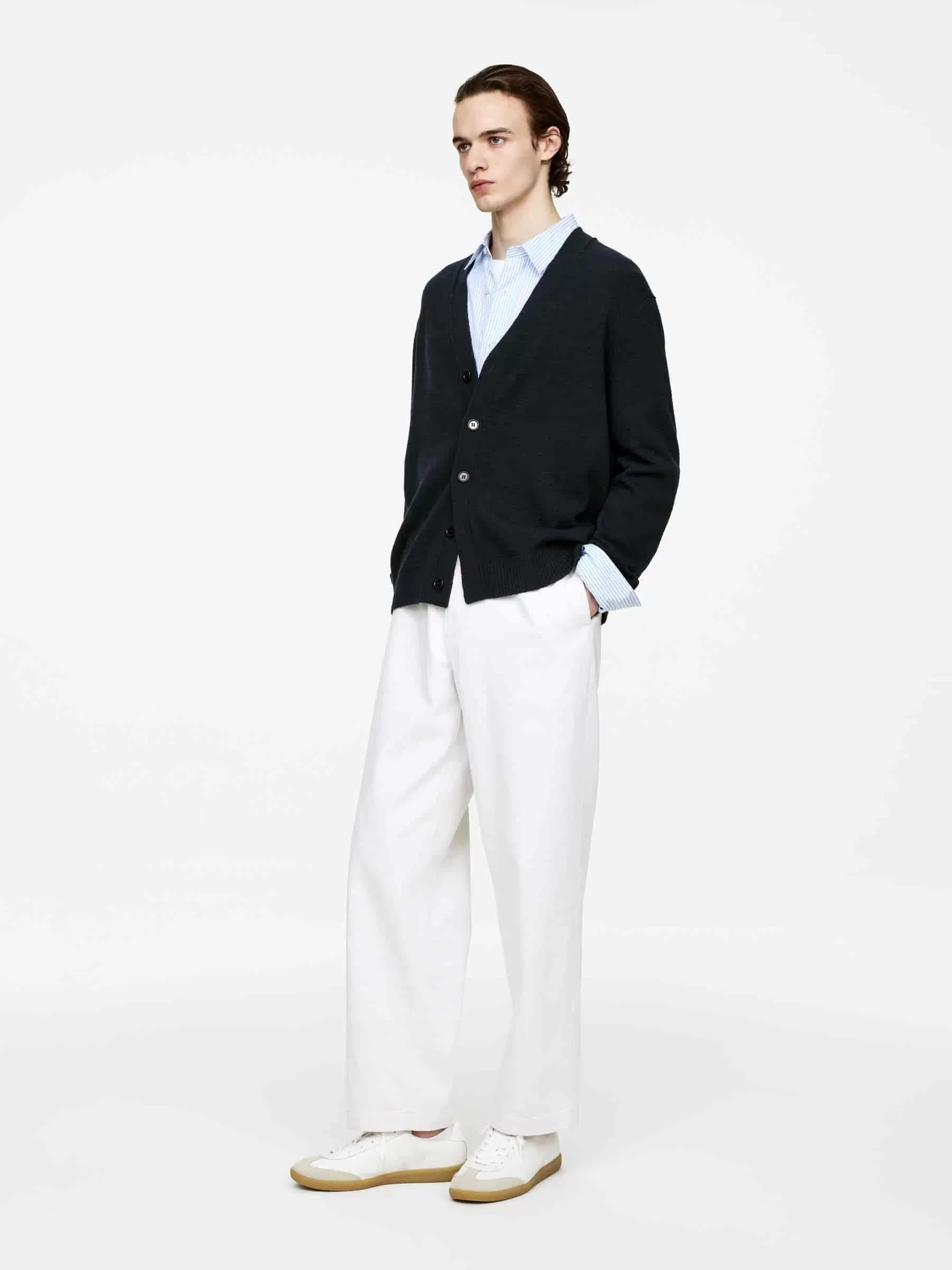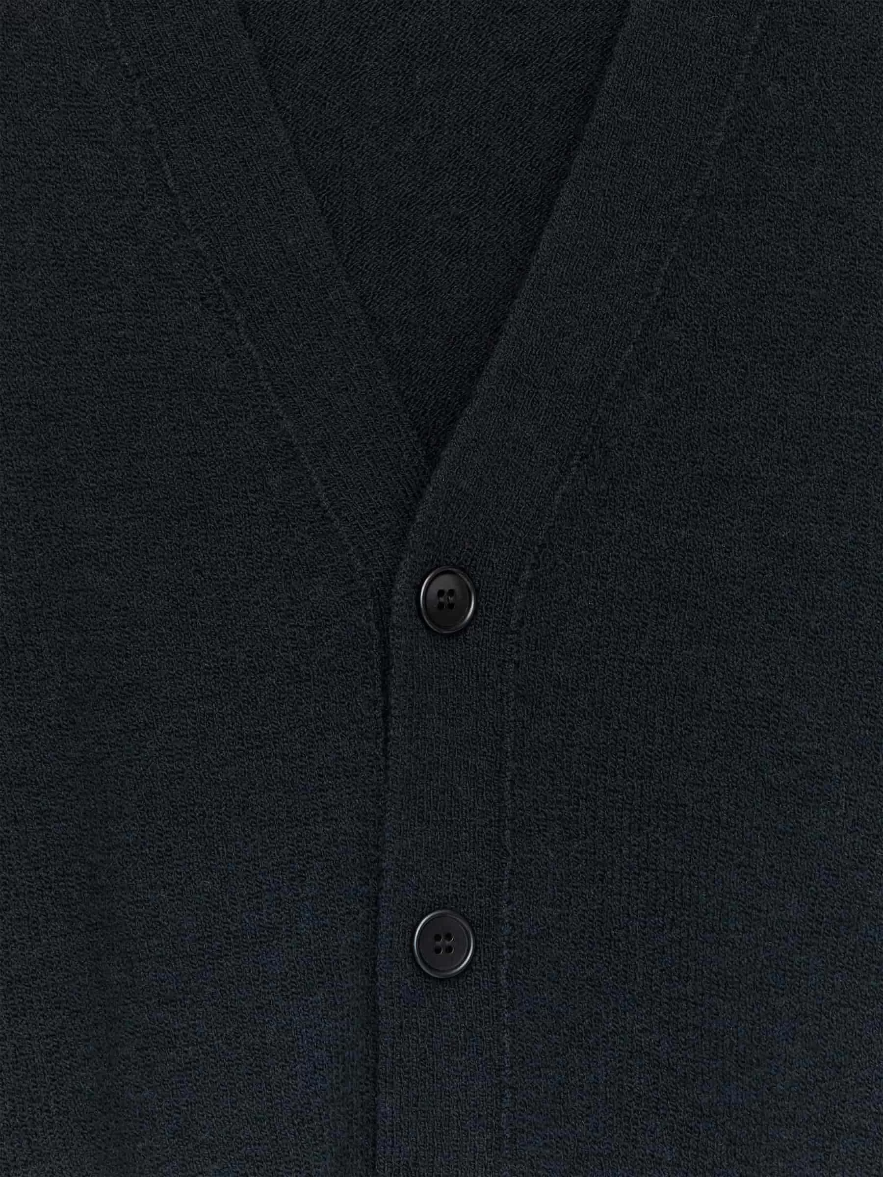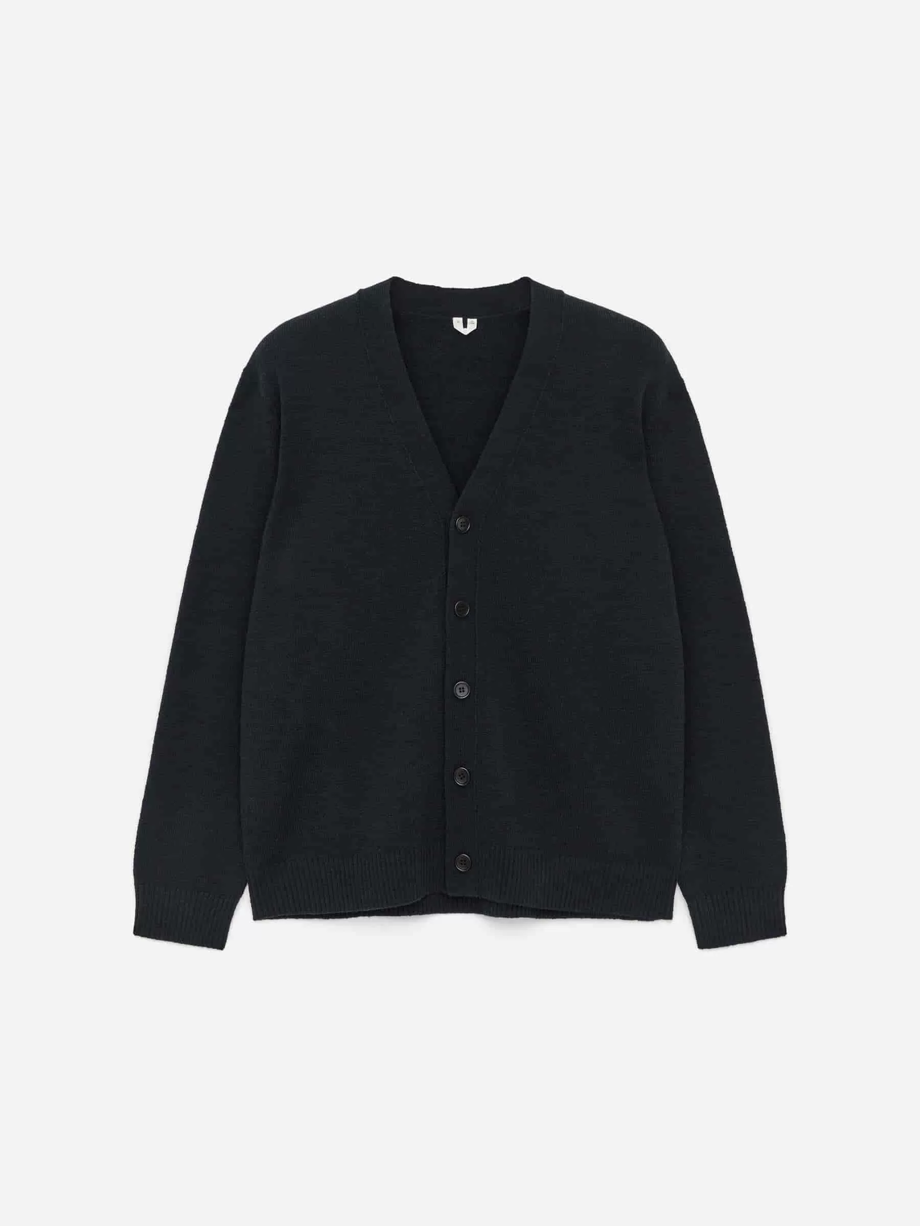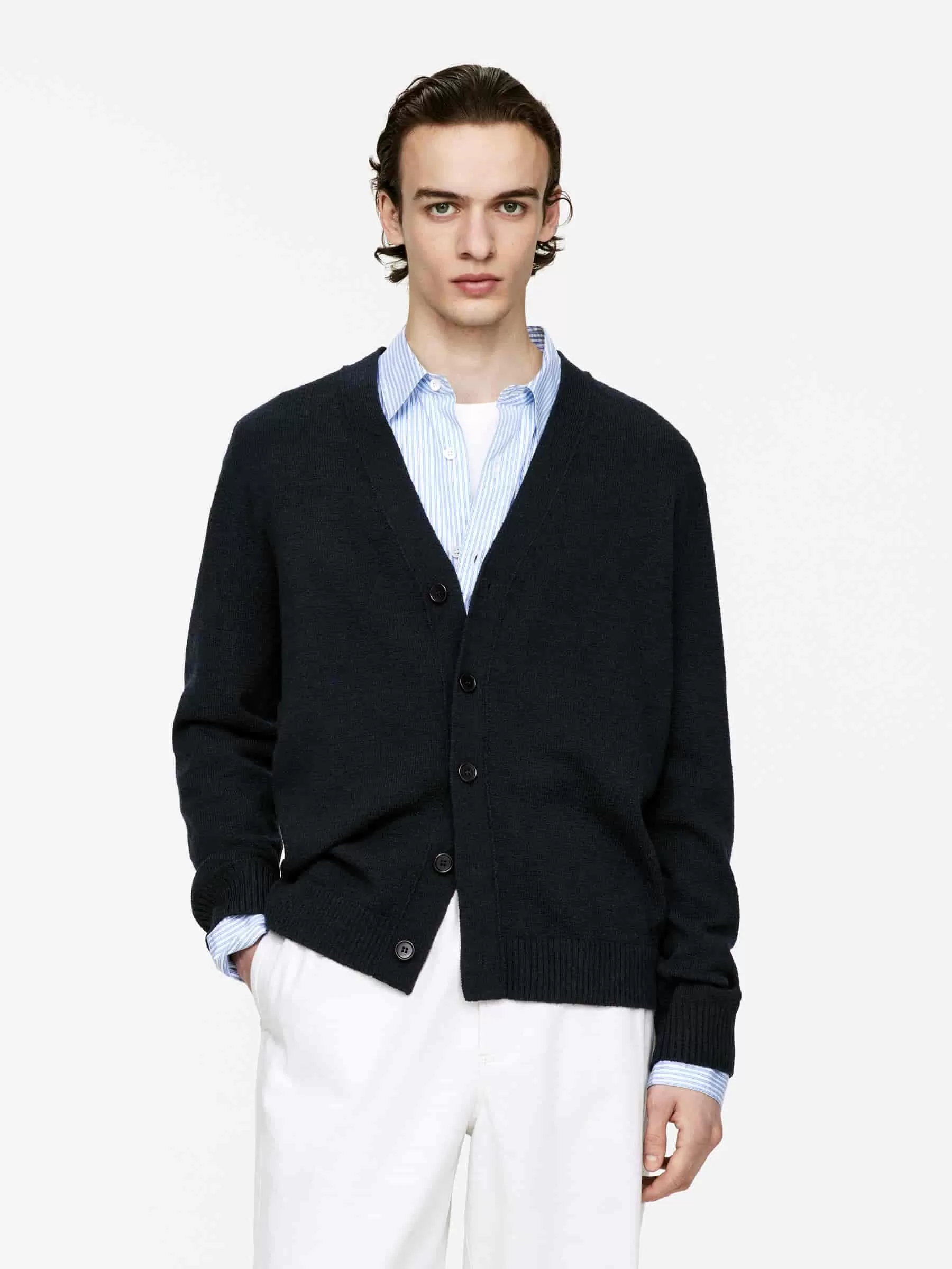 V-ringad cardigan stickad i en blandning av RWS ull och bomull. Detaljerad med knäppning fram och ribbad kant. Avslappnad passform. Produkten innehåller 60 % RWS-ull (TE-00047206). Produkter certifierade enligt Responsible Wool Standard (RWS) innehåller ullfibrer från gårdar som är oberoende certifierade enligt kraven på djurskydd och markförvaltning.