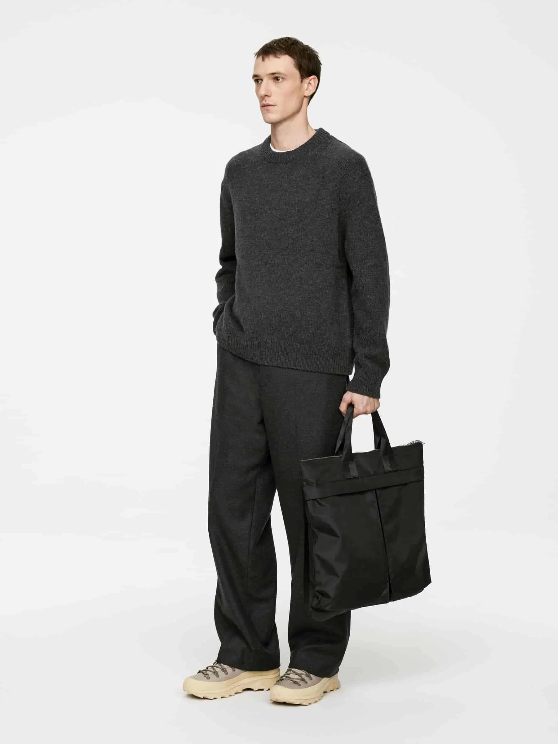 ARKE Herr Kraftig stickad ullblandningströja Svart Melange