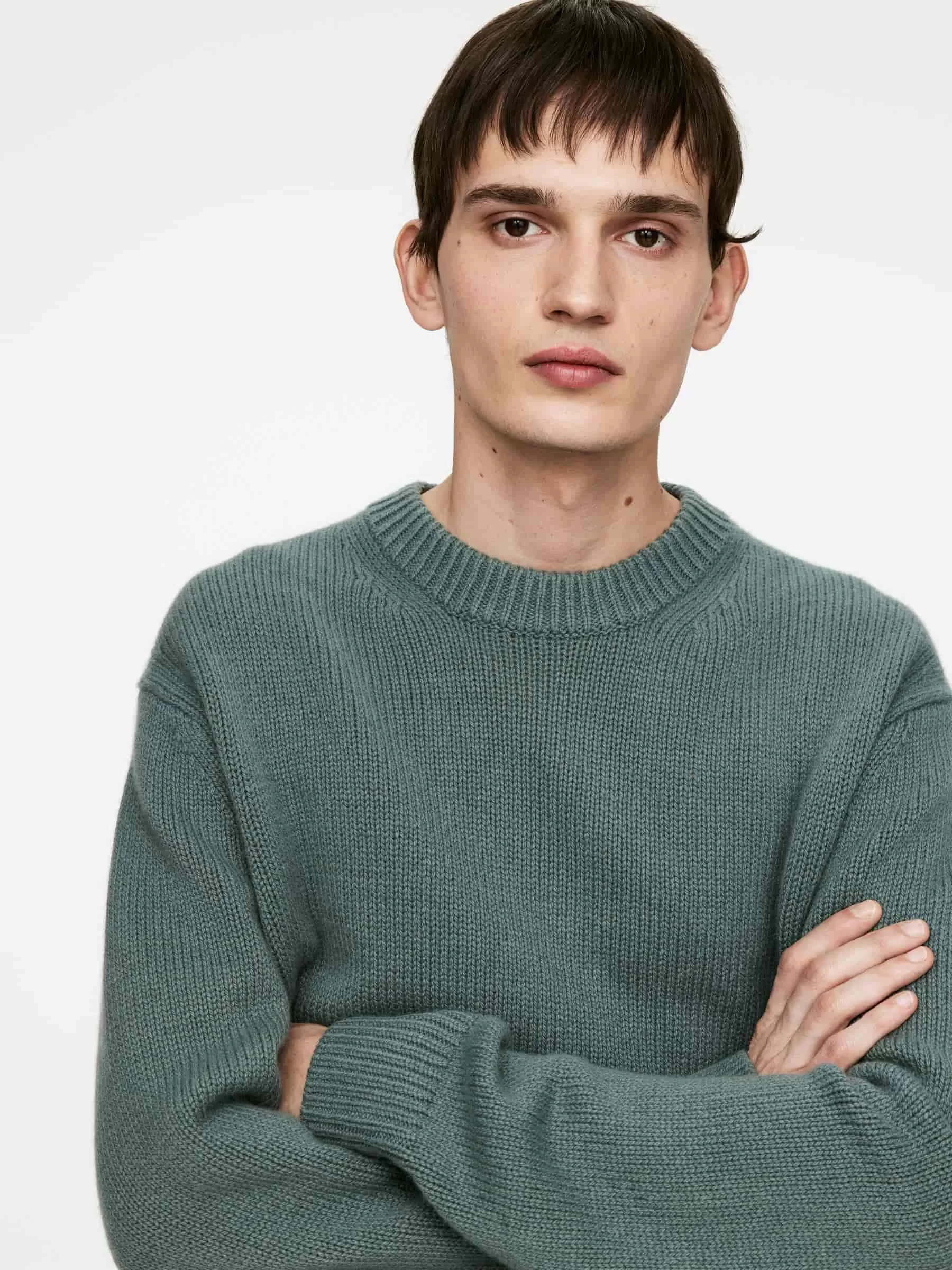 Chunky tröja stickad i en slät söm och designad med en oversized passform och en boxig siluett. Tillverkad av mjuk ull med nylon tillsatt för en lätt känsla. En rund halsringning med ribbstickade beslag.