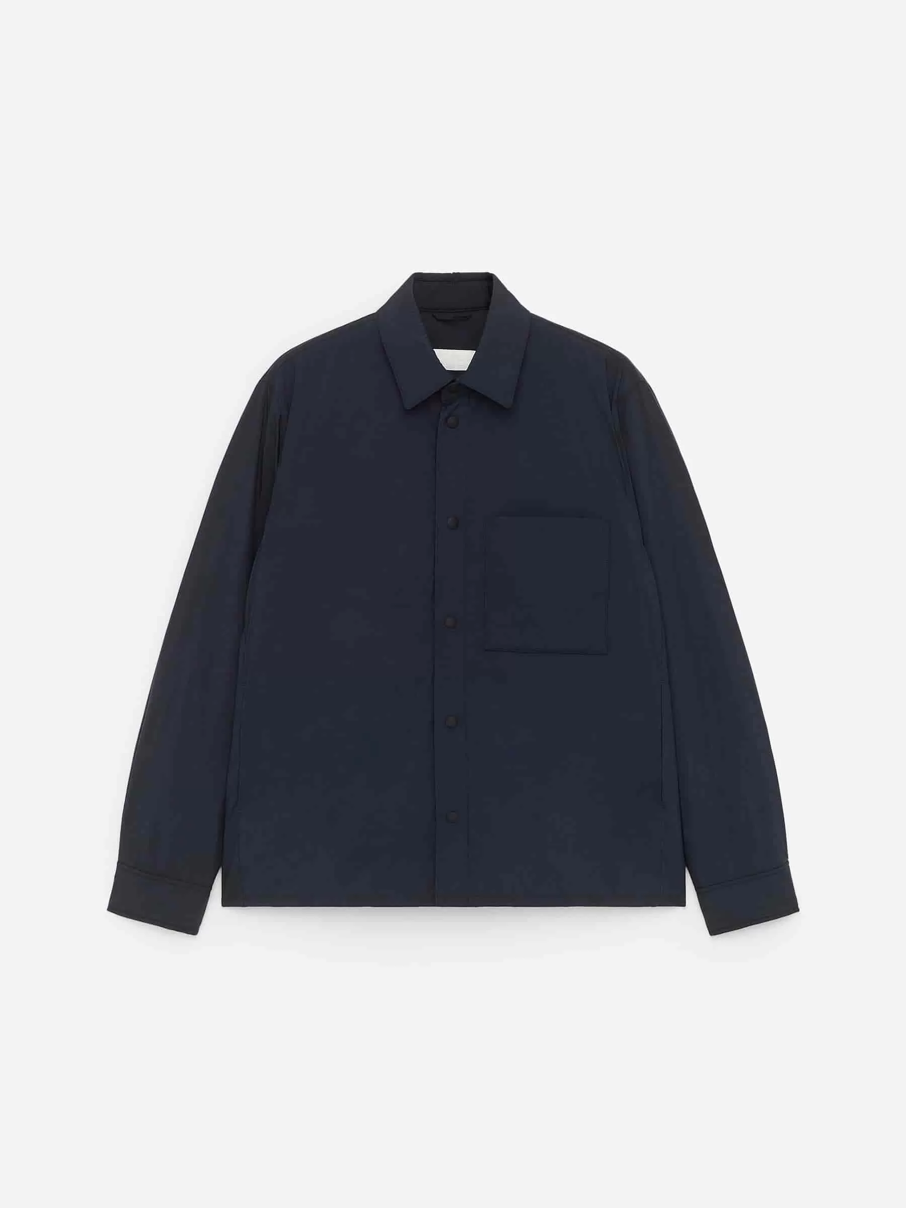 Lätt vadderad overshirt med vanlig krage och tryckknappar. Enkel patchficka på bröstet. Quiltat foder. Normal passform.