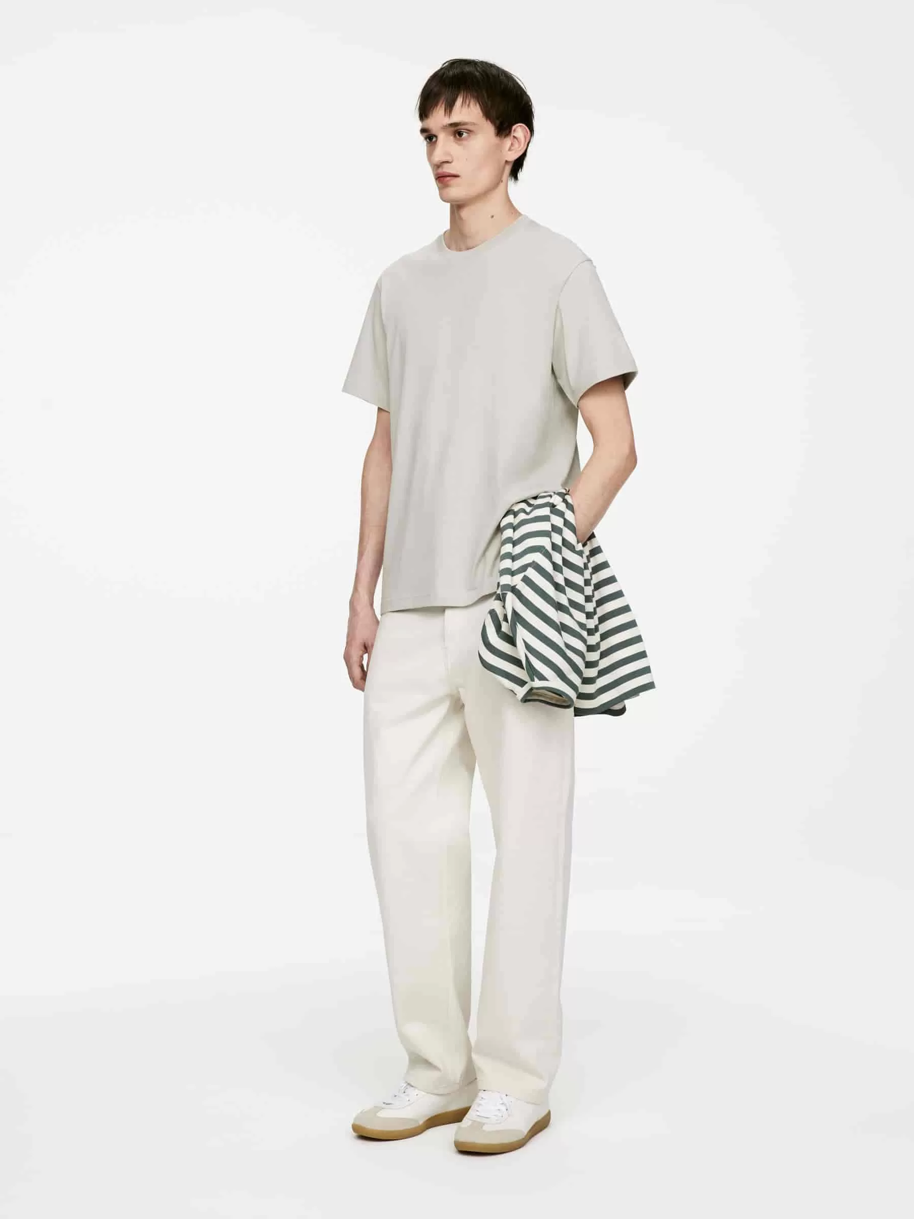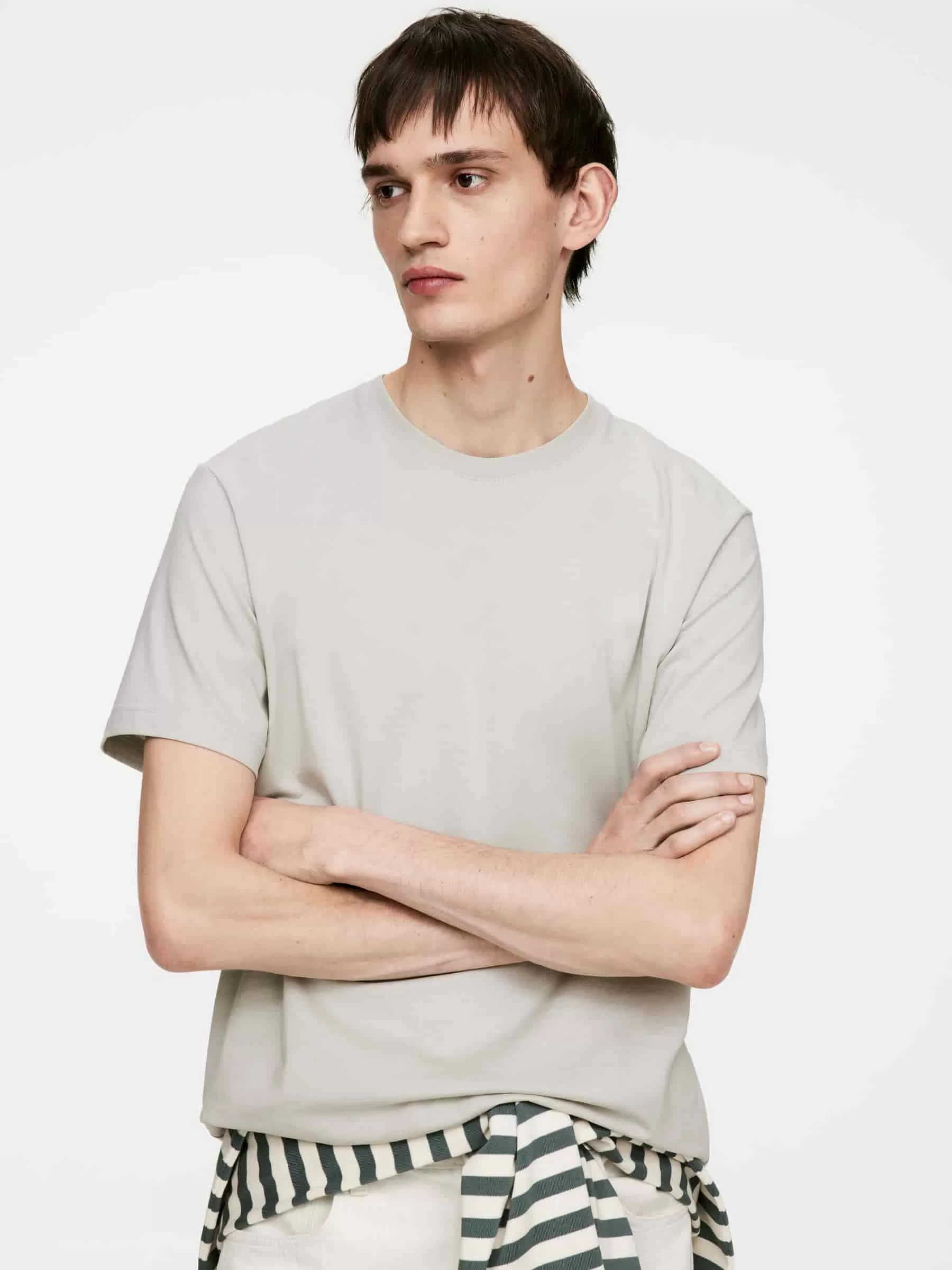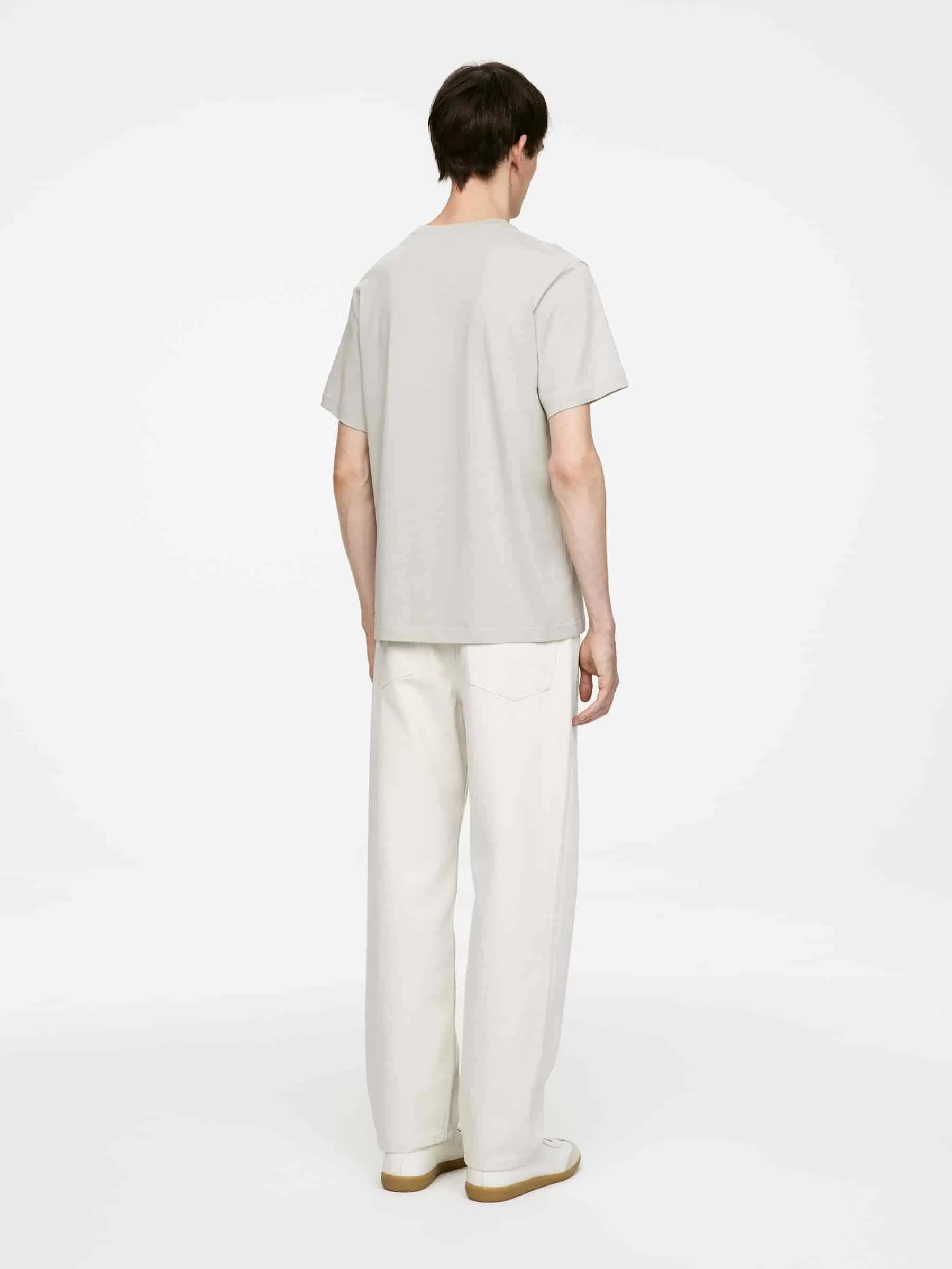 Klassisk T-shirt med rund hals för en normal passform. Den är gjord av 170 GSM singeltröja, vilket indikerar att detta är den lättaste av ARKETs standard-T-shirts.