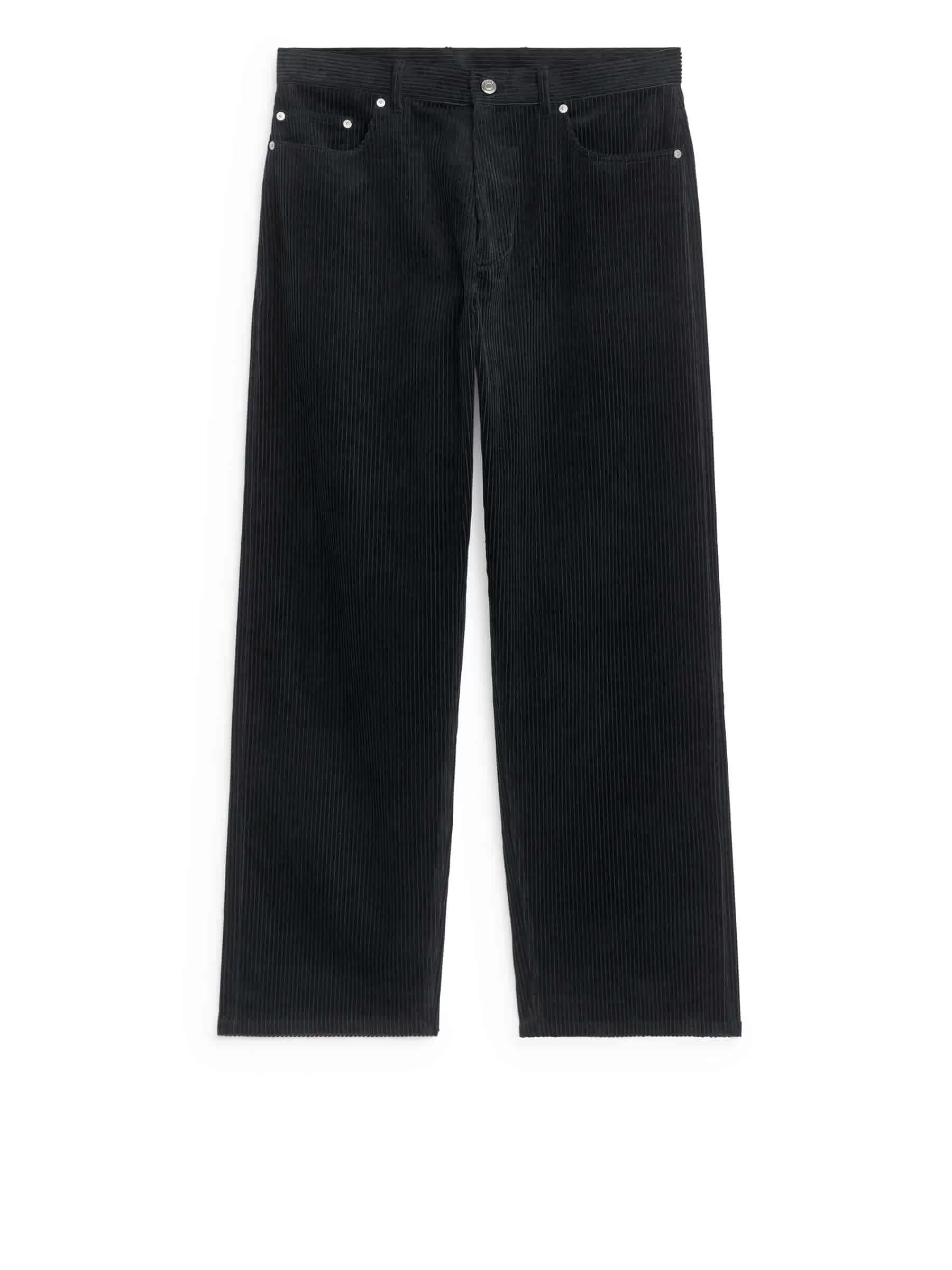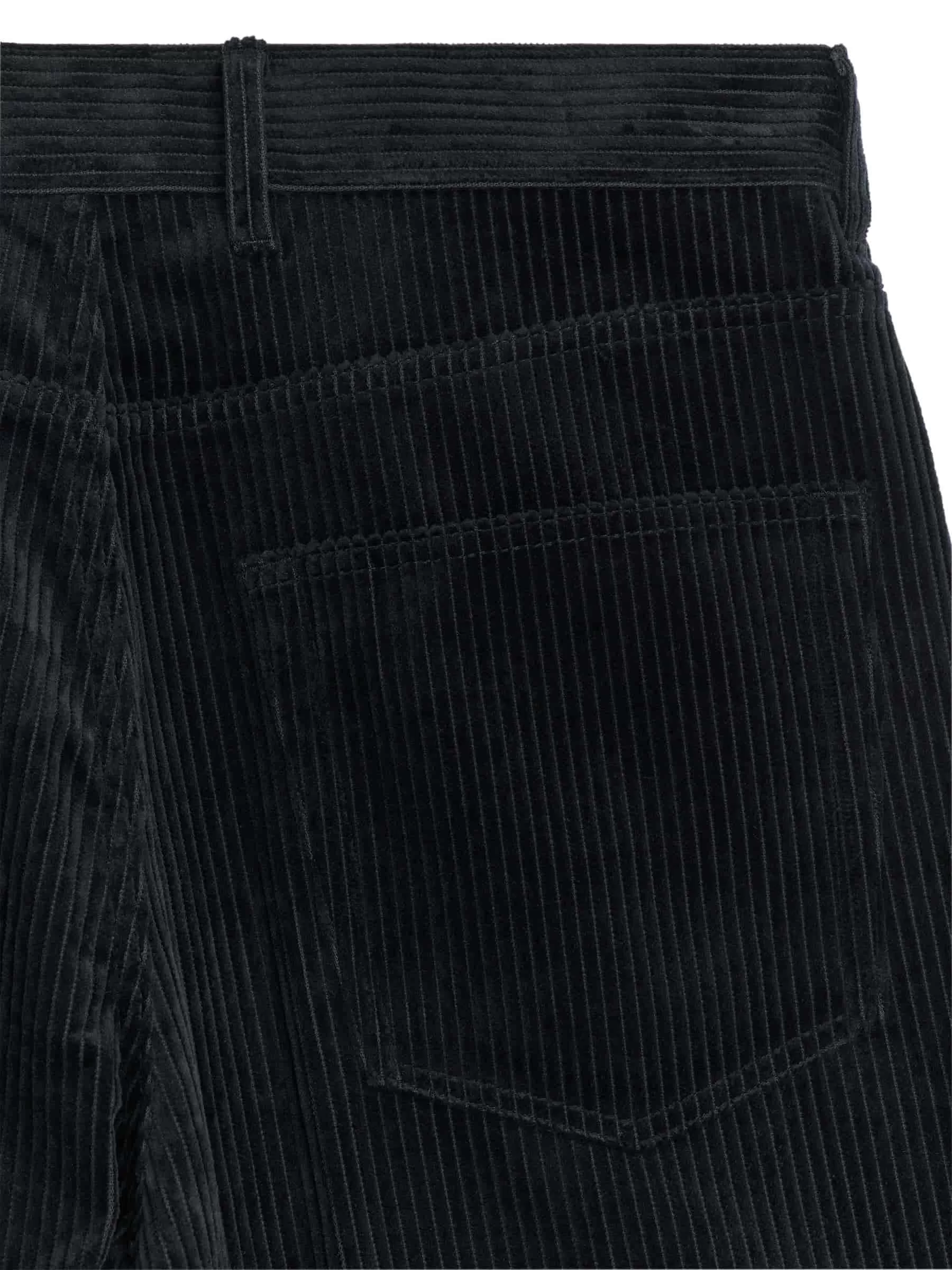 Manchesterbyxor skurna för en rak, lös passform. En femficksmodell med knappstängning och gylf med dragkedja.