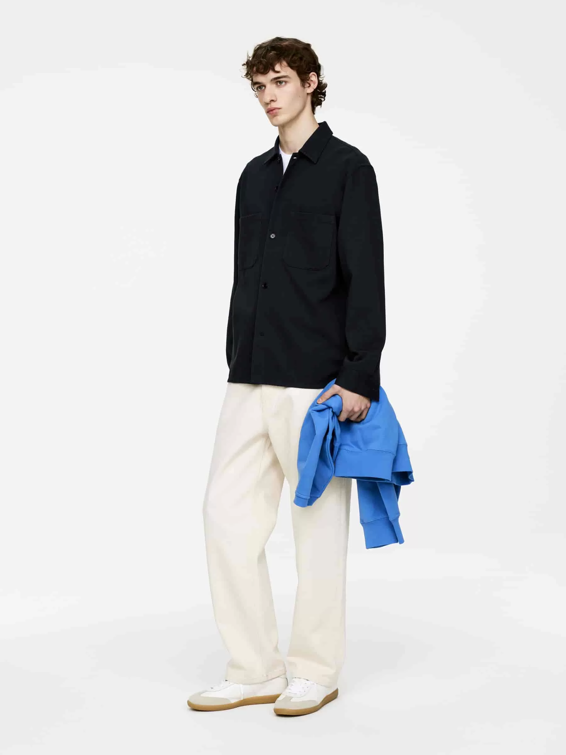 Överskjorta tillverkad av en slät twillvävd bomull. En normal passform med detaljerade bröstfickor, pressad krage och knappslå och manschetter.