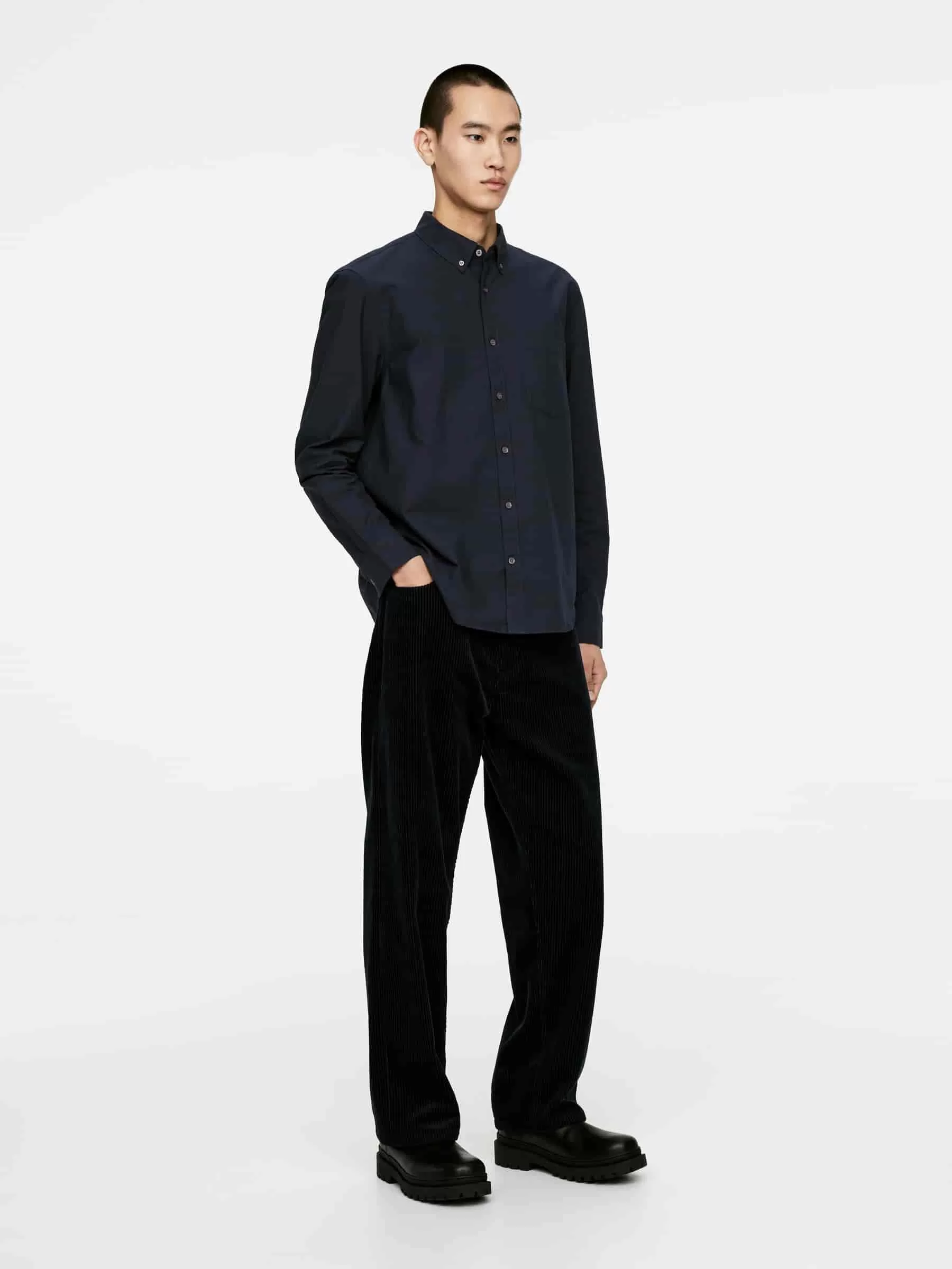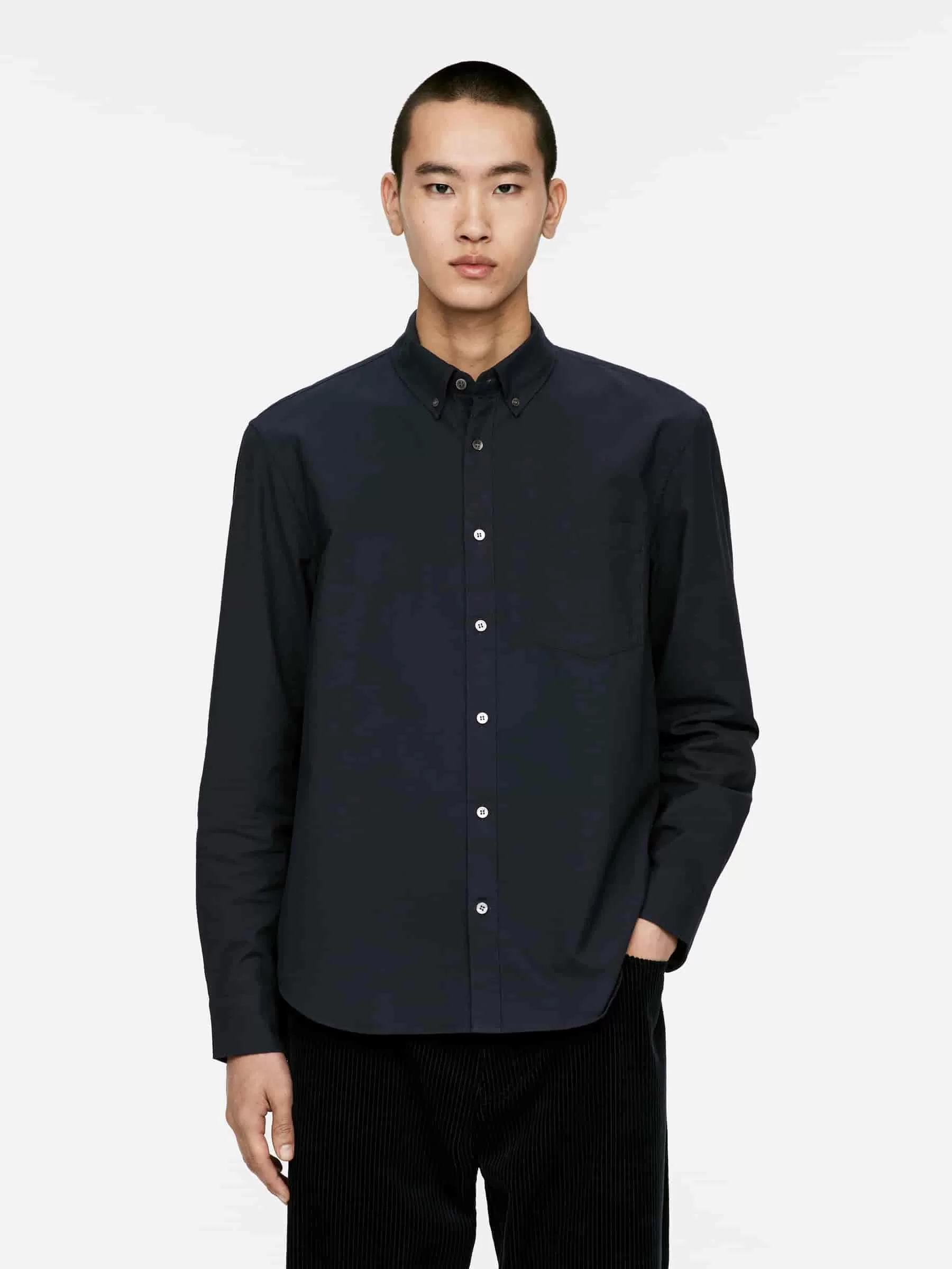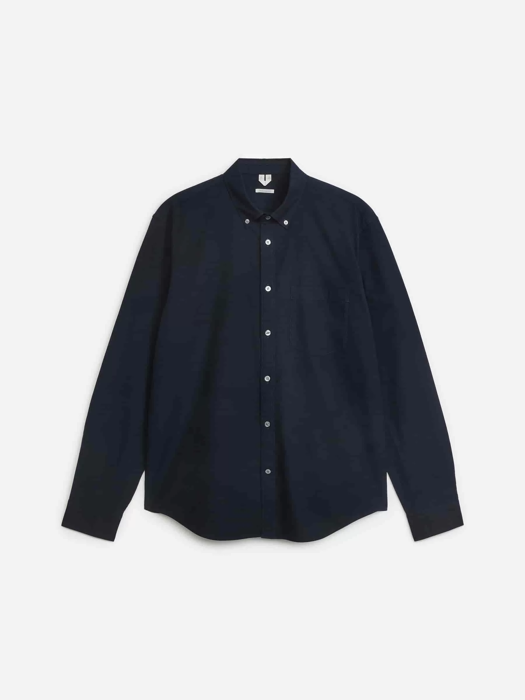 Denna skjorta är en av ARKETs arketypiska mönster, en skjorta med normal passform med button-down krage. Denna iteration är sydd av en Oxfordväv. En avslappnad stil med en vanlig knappslå framtill och en bröstficka. Rundad fåll.