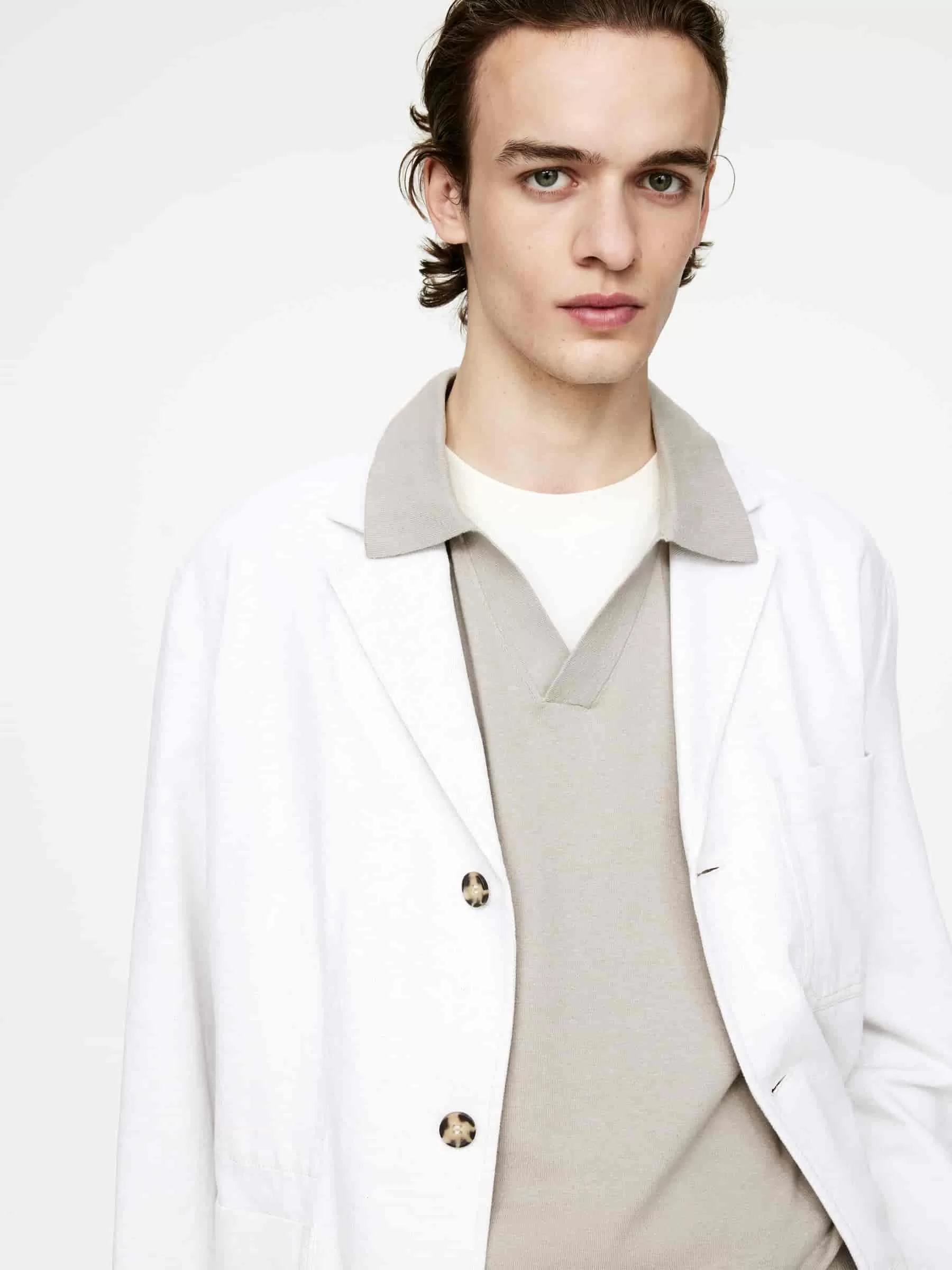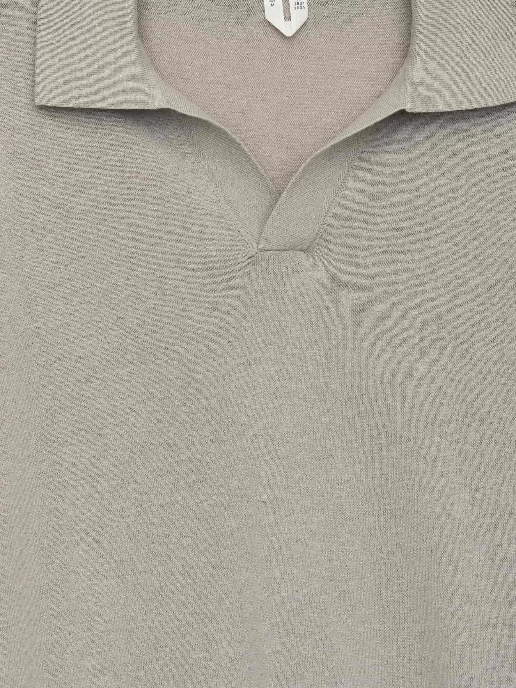 Blandningen av linne och bomull ger en mjuk, svalkande komfort till denna finstickade pikétröja. En avslappnad, kortärmad stil med detaljerad ribbstickad krage och V-ringning. Vanlig passform.