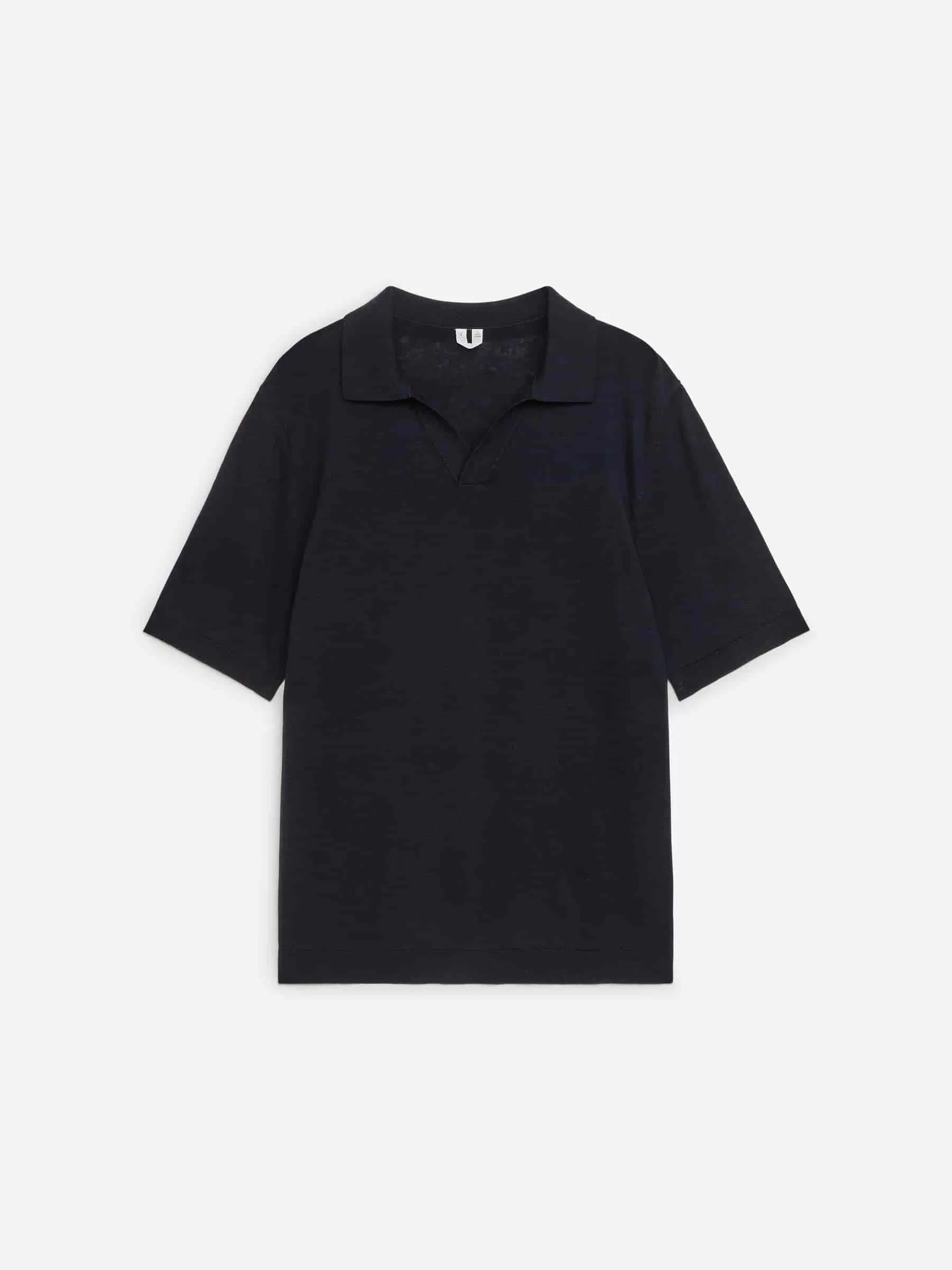 ARKE Herr Pikétröja i bomullslinne Mörkblå