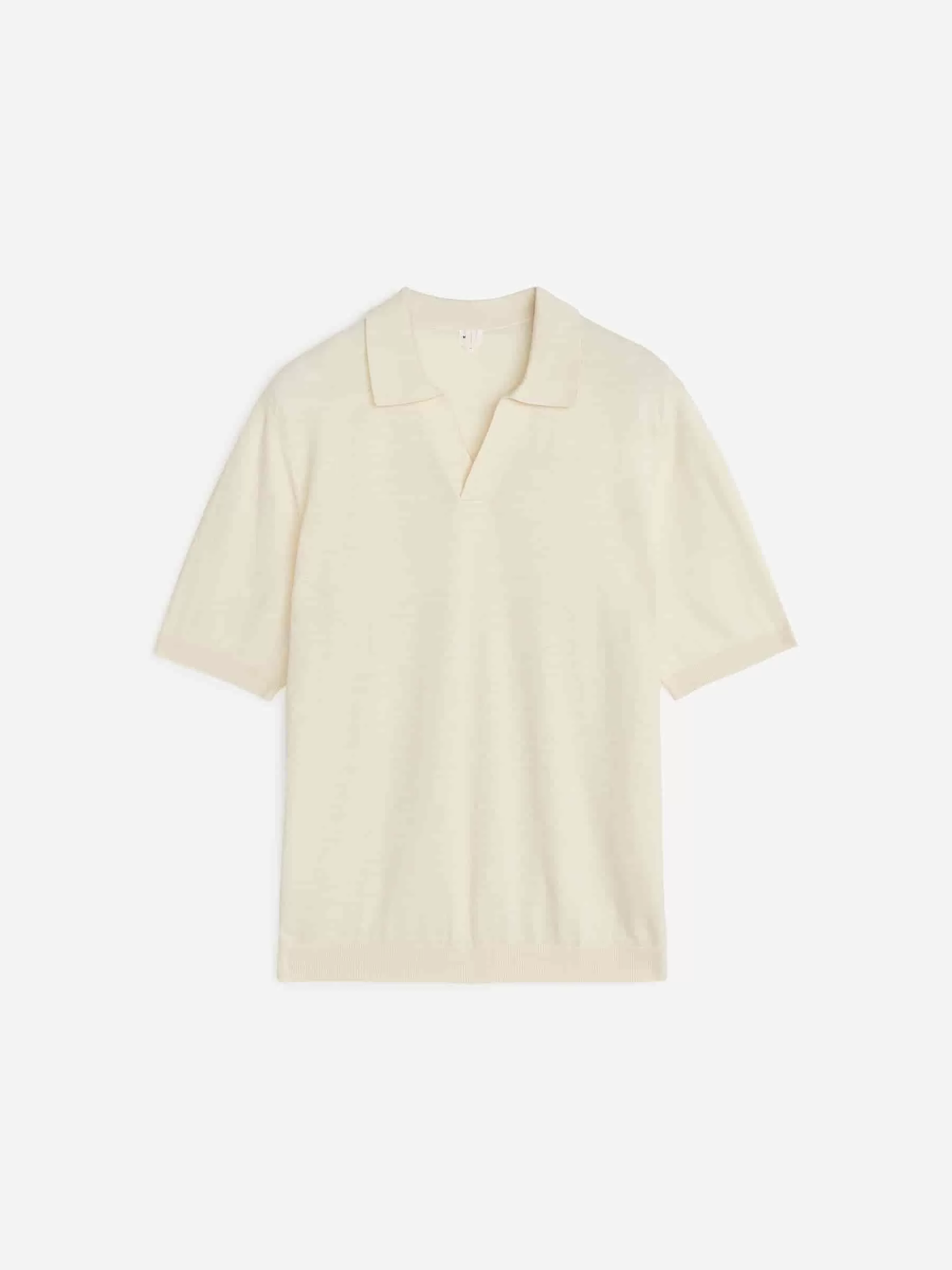 ARKE Herr Pikétröja i bomullslinne Benvit