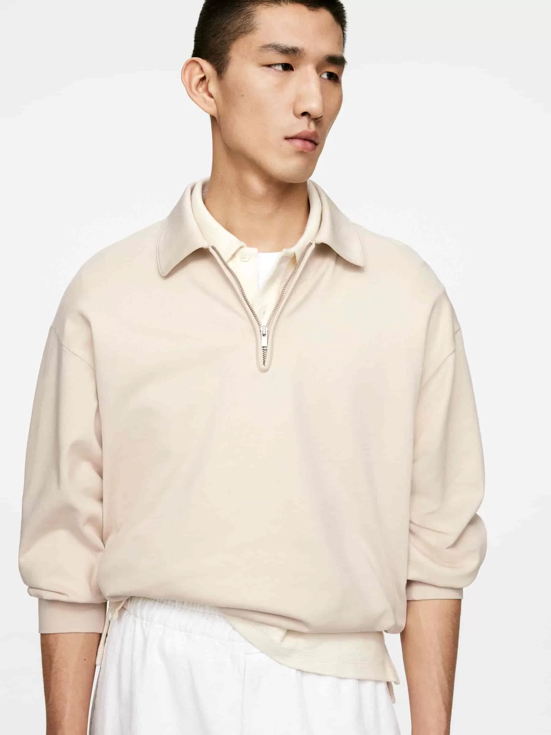 ARKE Herr Pikétröja med halv dragkedja Beige