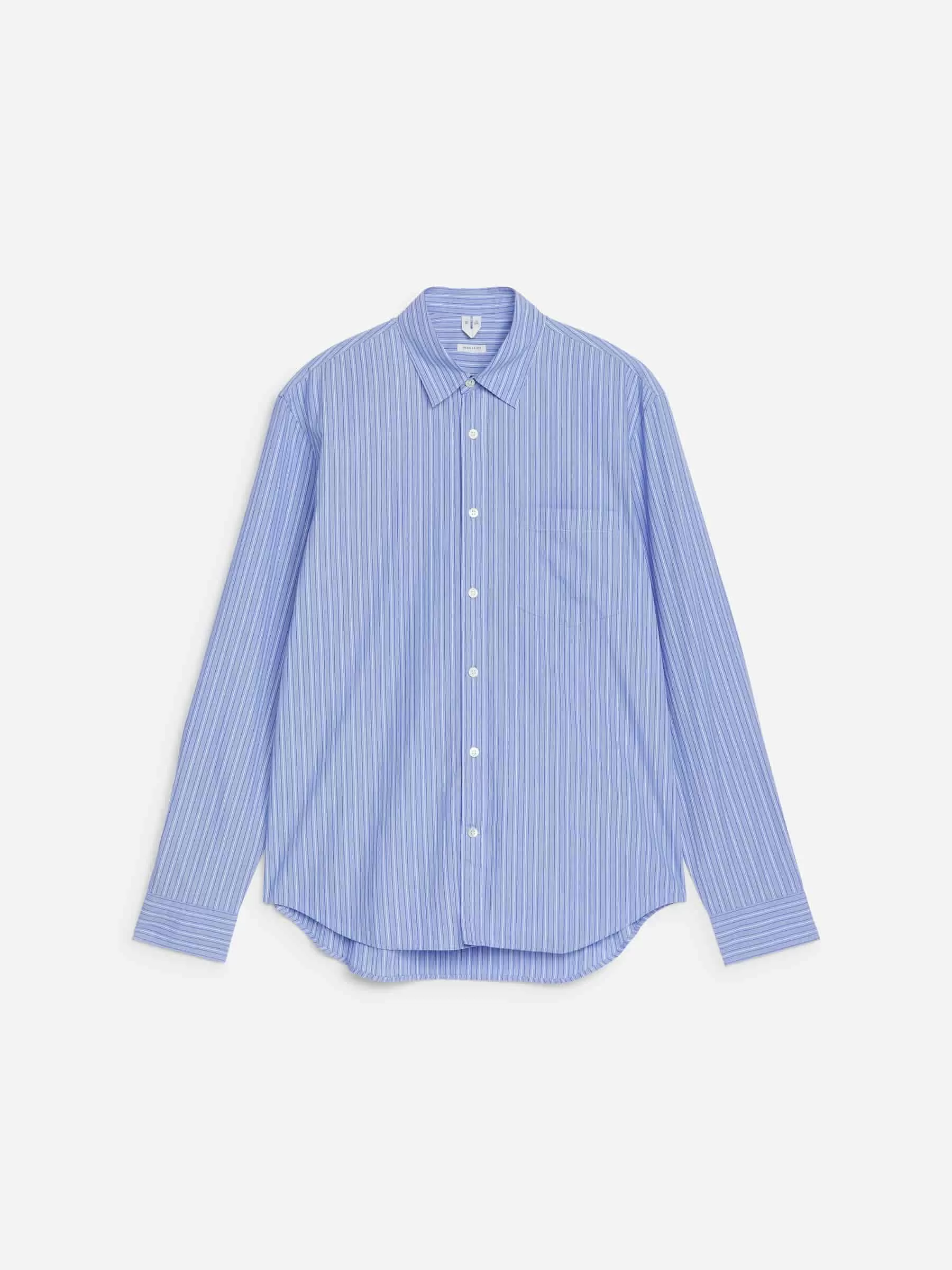 Skjorta tillverkad av en knaprig bomullspoplin. Klippt för en normal passform, stylad med en vanlig krage och en enkel bröstficka. Manschetter med knäppning. Böjd fåll. Pärlemorknappar, vilket betyder att denna produkt innehåller material från animaliskt ursprung.