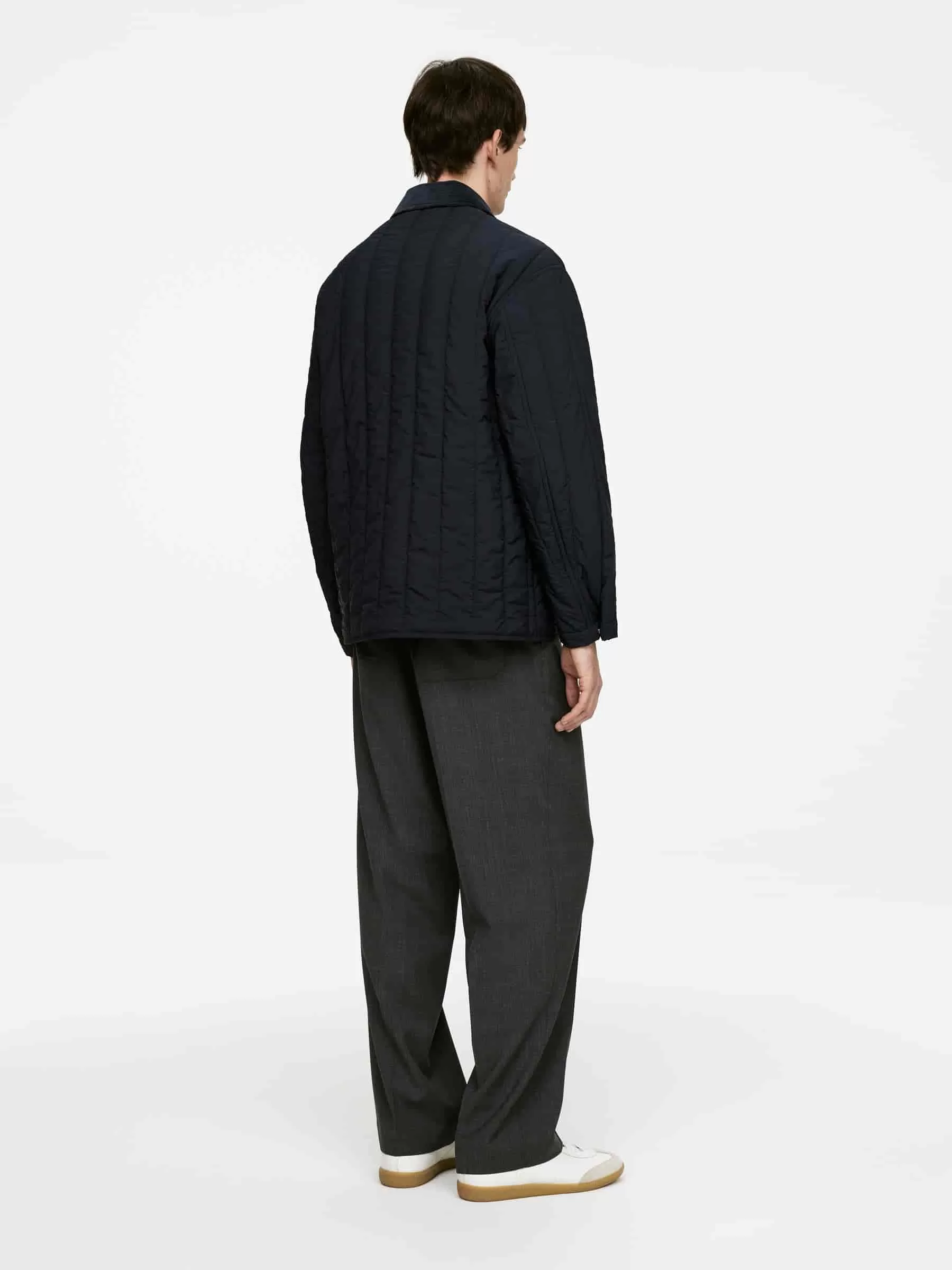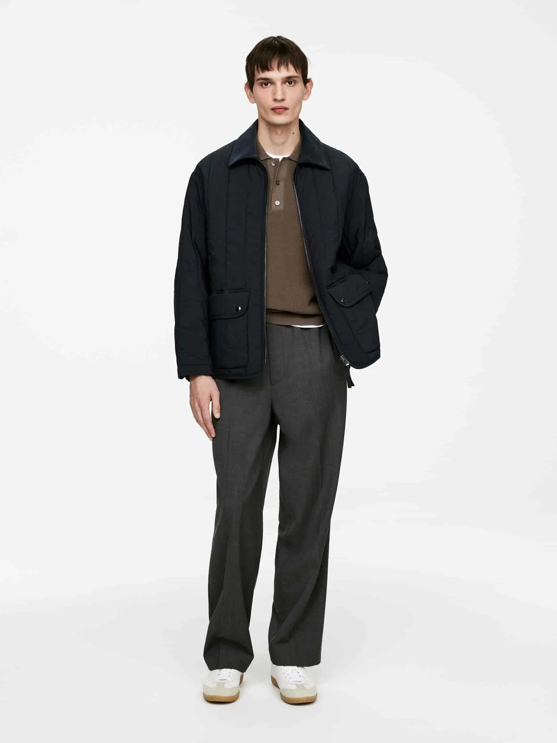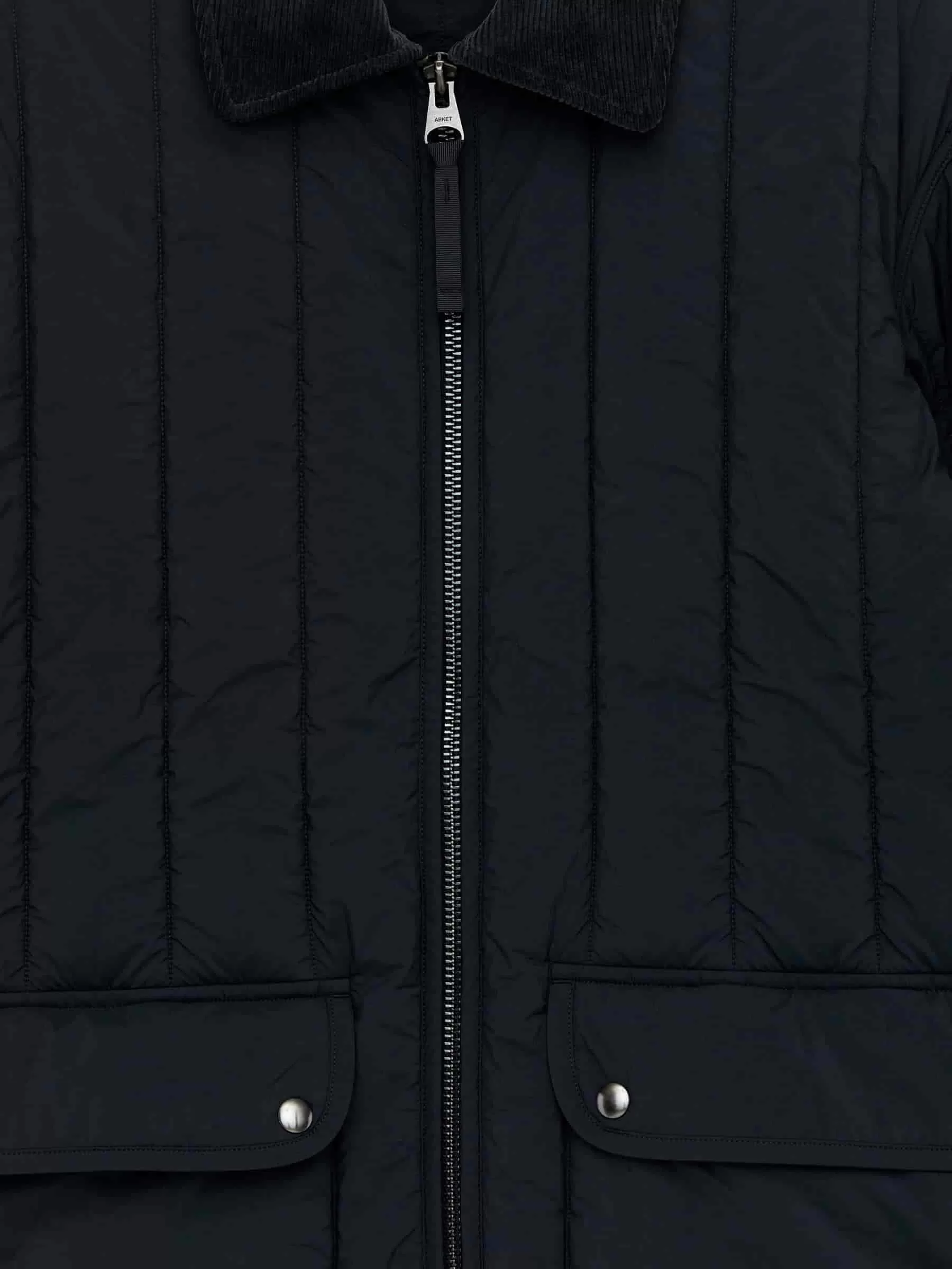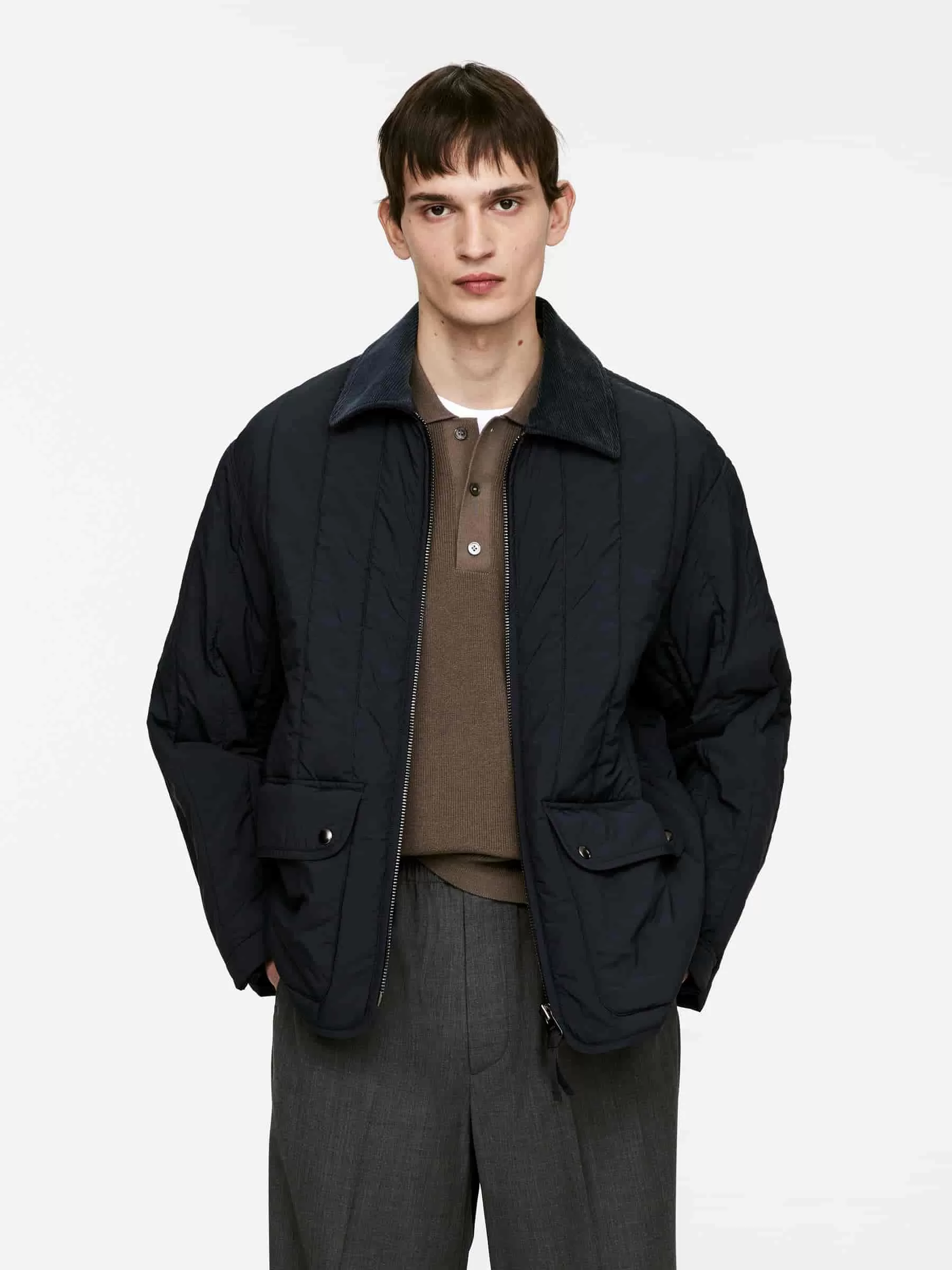 Quiltad linerjacka med manchesterkrage. En kort modell med dragkedja och lappade fickor med lock. Normal passform.
