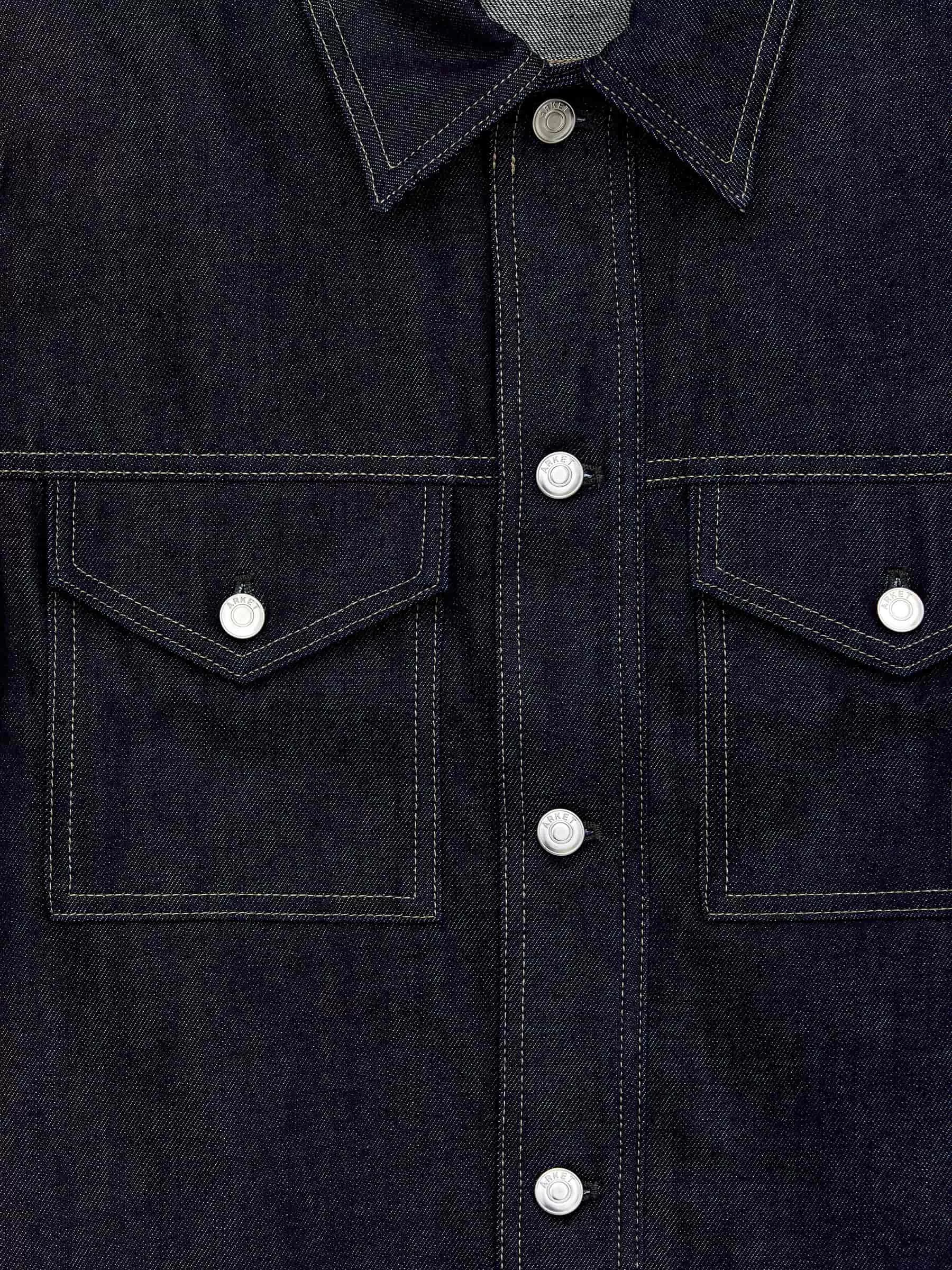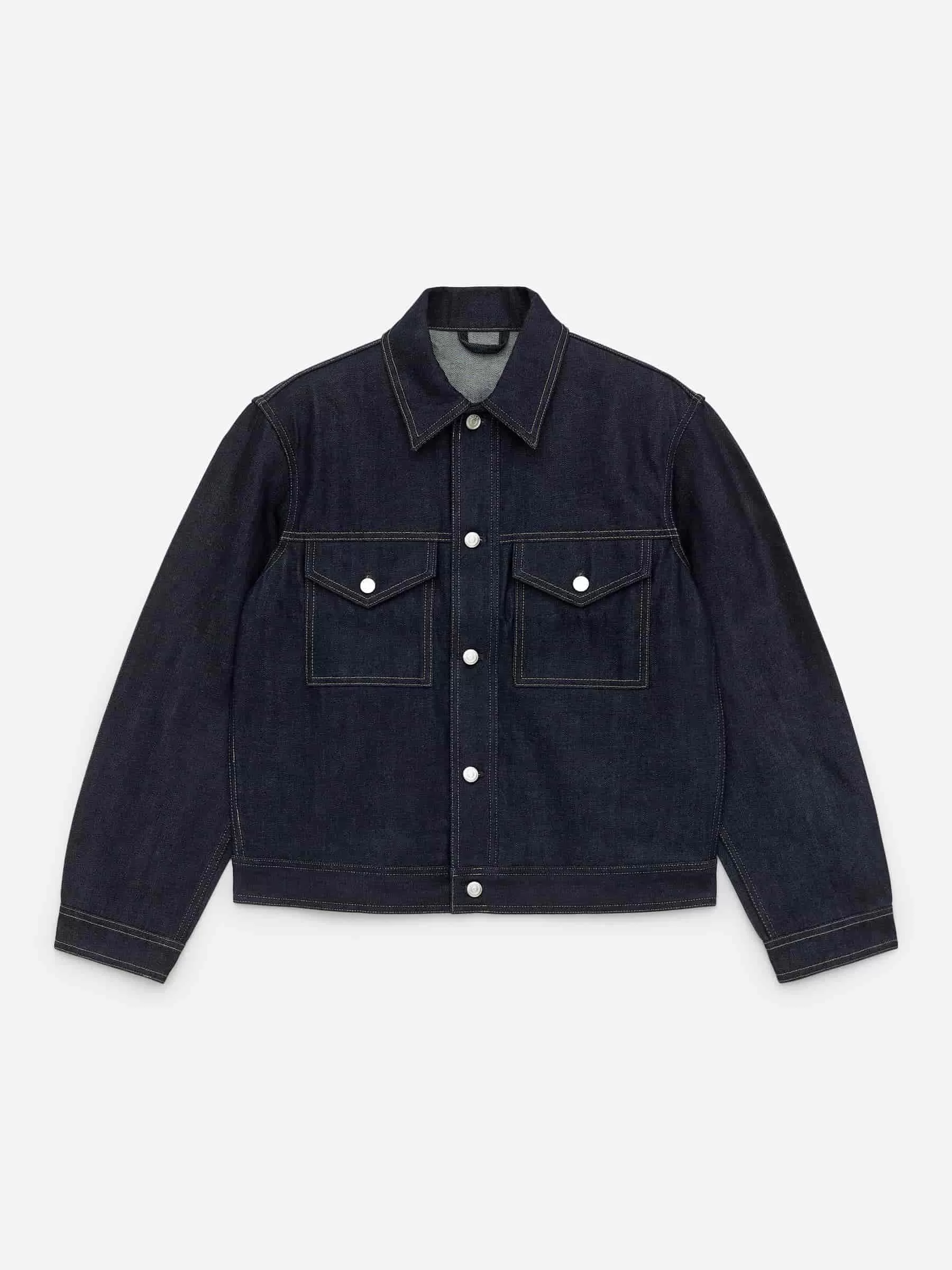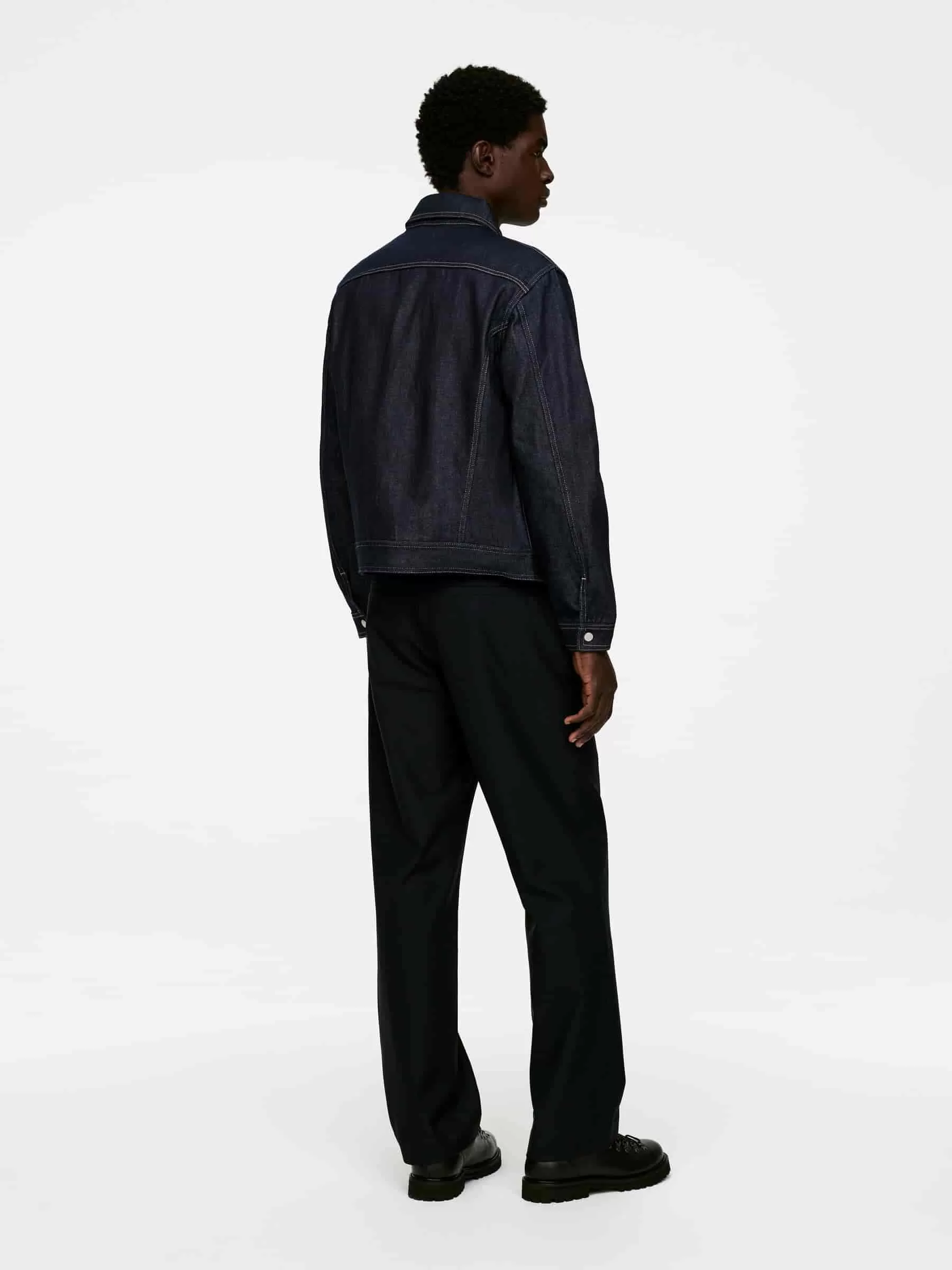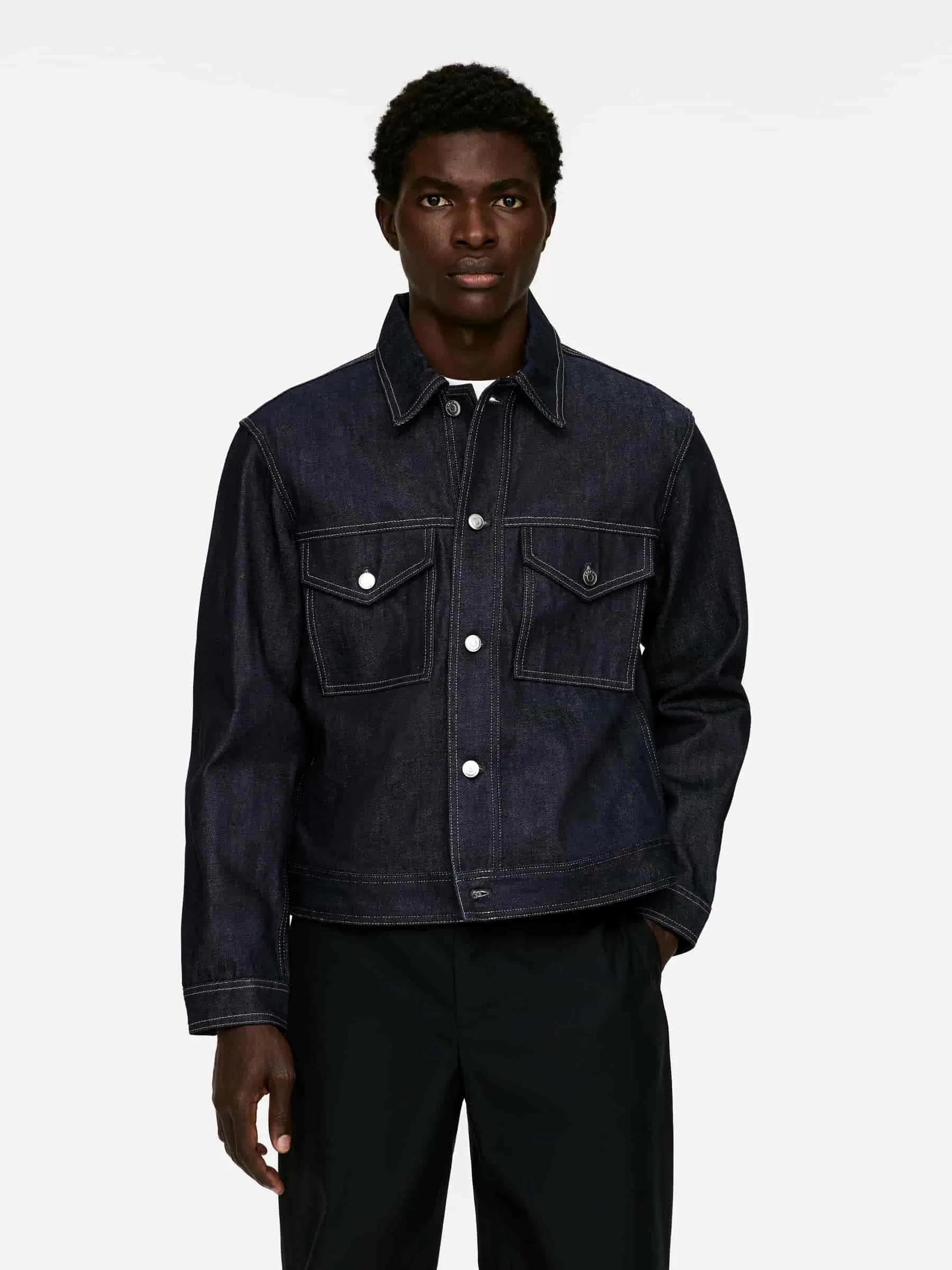Klassisk jeansjacka i normal passform. Tillverkad av rå denim. Stylad med en vanlig krage, skaftknappar och bröstfickor med flikar.
