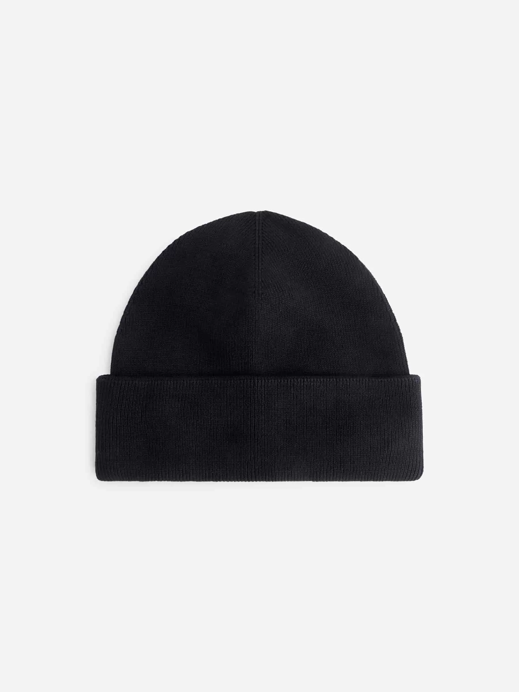 Räbbad mössa i bomullsblandning med dubbelvikning och normal höjd.