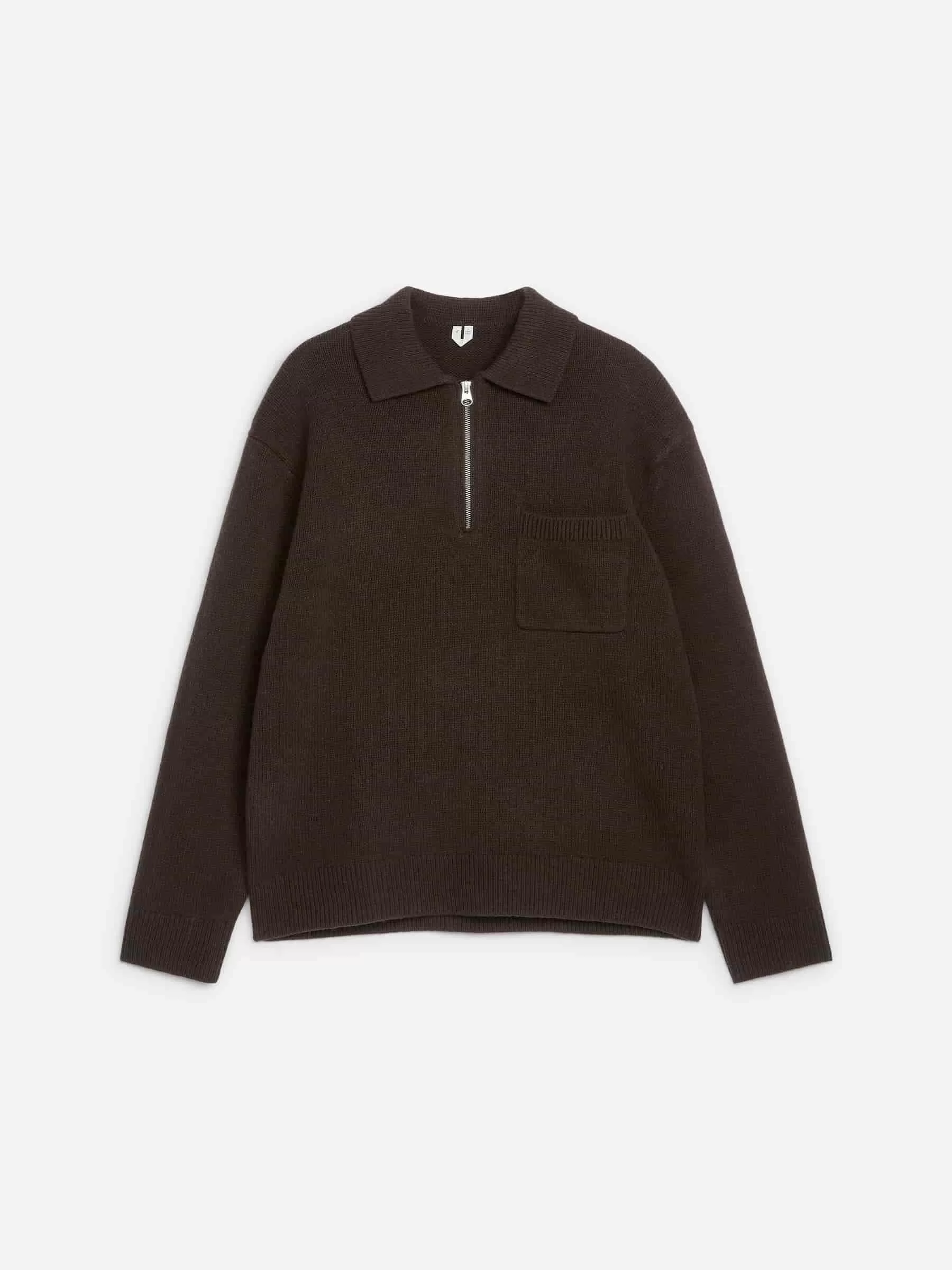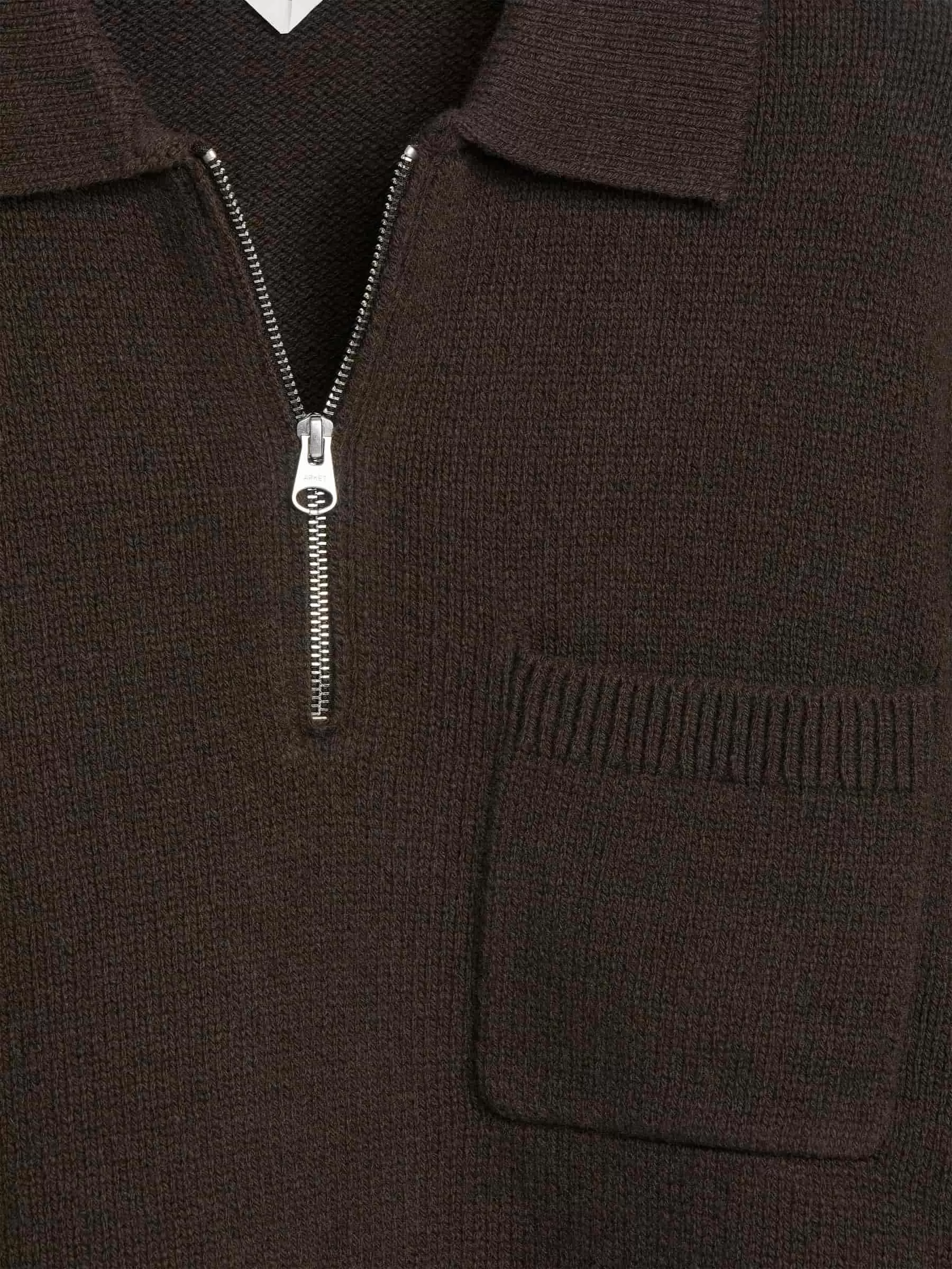 ARKE Herr Stickad pikétröja i ull med dragkedja Brun