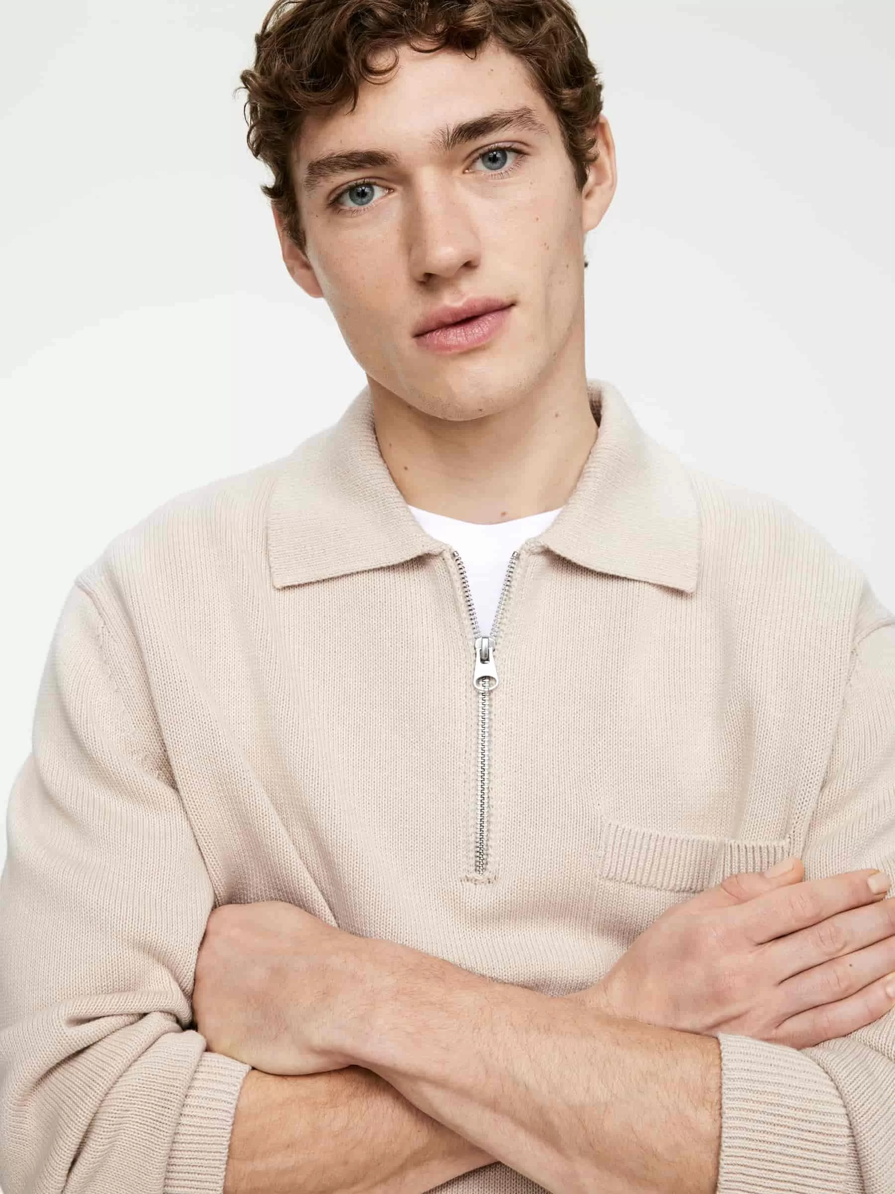 ARKE Herr Tröja i bomull med halv blixtlås Beige