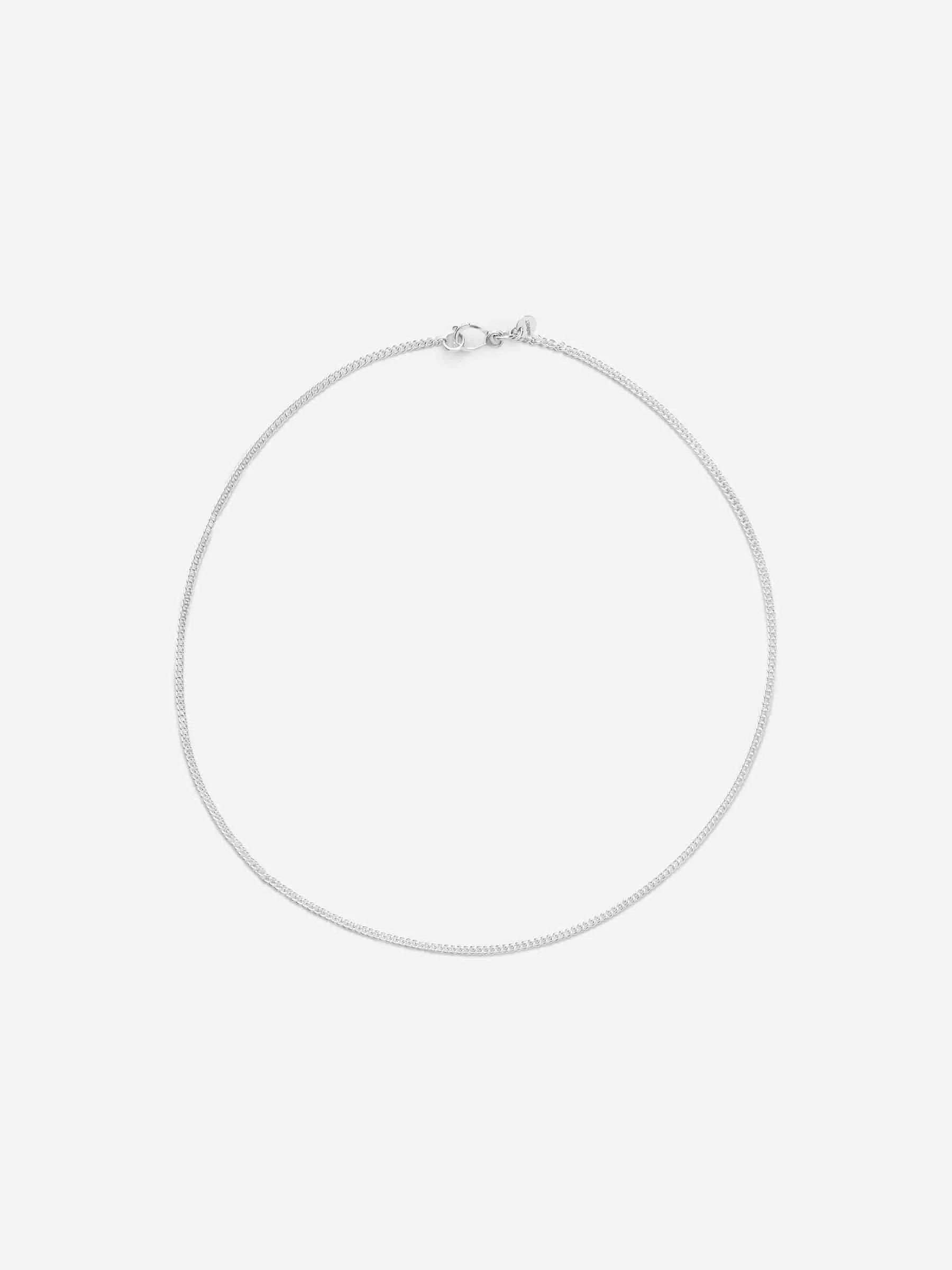 Tunnt halsband i sterlingsilver. Silvret är opläterat vilket gör det enkelt att polera med valfri silverputsduk. Längd 52 cm. Låsstängning.
