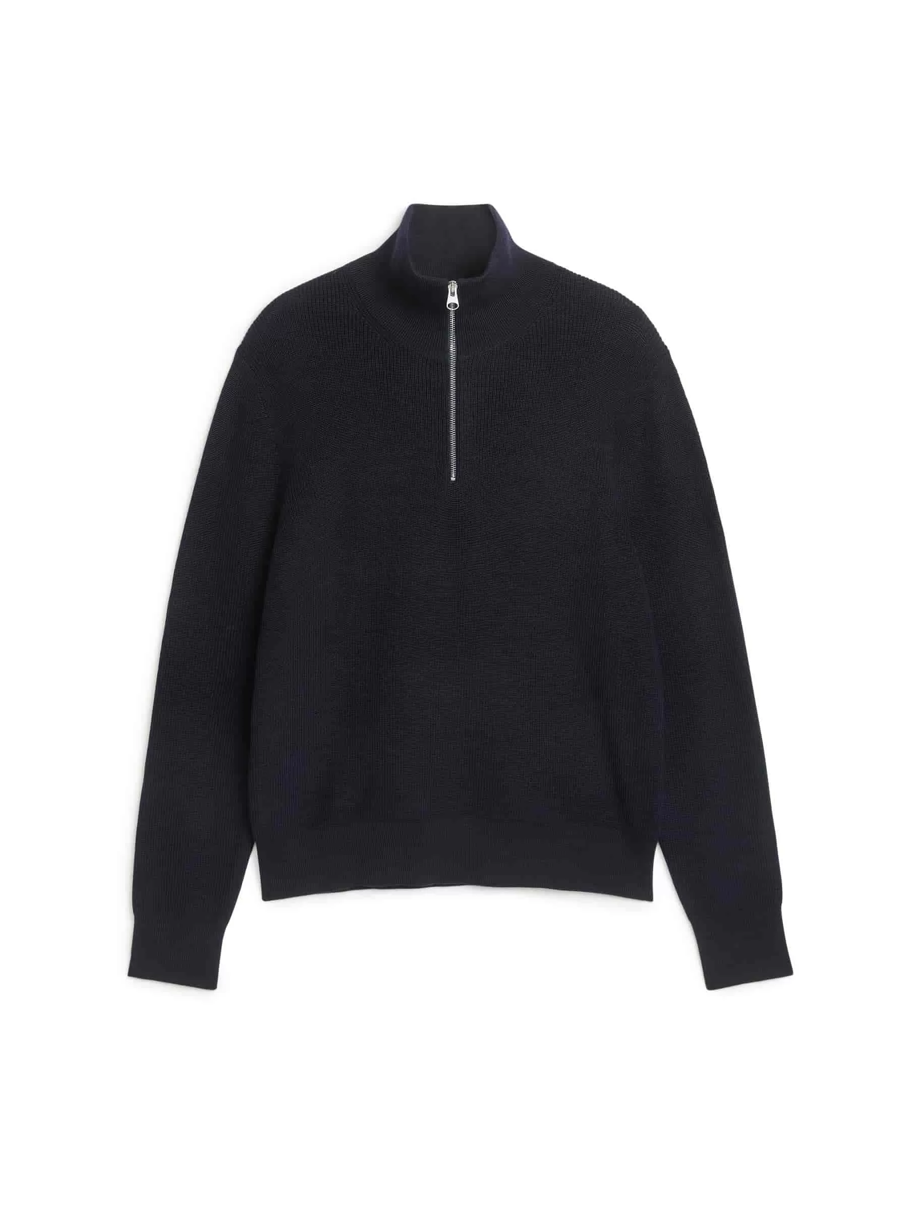 Tröja med en lätt torr känsla, gjord i en blandning av rå ull och bomull. ARKETs Raw wool™-garn är spunnet av extra starka och lite grövre ullfibrer än vanligt. Den torra känslan mjuknar med tiden då fibrerna naturligt blir mjukare och mer följsamma. Tröjan är stickad i en halvkoftsöm och har en hög krage med halv dragkedja. Ribbstickade beslag. 12 gauge. Bygeln innehåller 69 % RWS-ull, certifierad av kontrollförbundet 1244999. Produkter certifierade enligt Responsible Wool Standard (RWS) innehåller ullfibrer från gårdar som är oberoende certifierade enligt kraven på djurskydd och markförvaltning.