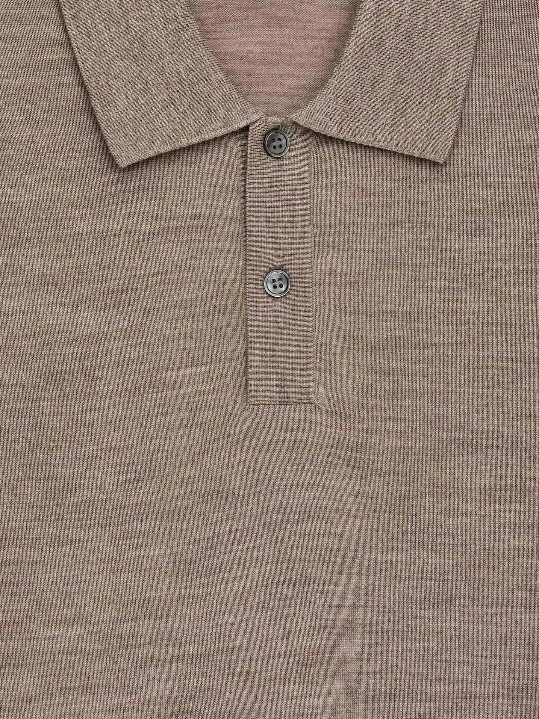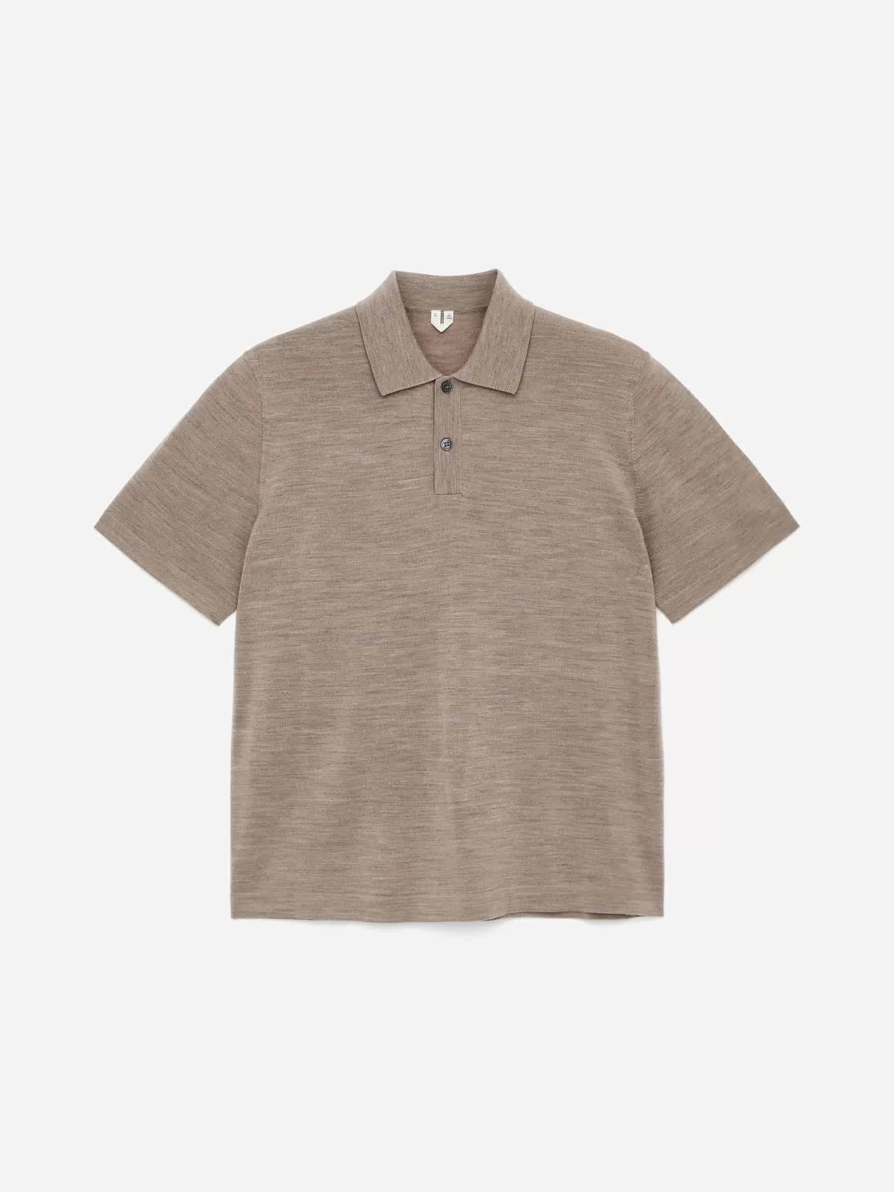 Finstickad pikétröja av ull. En kortärmad modell med en krage i hel Milano-stickning och en knappslå med två knappar. Produkten innehåller 100 % RWS-ull (TE-00047206). Produkter certifierade enligt Responsible Wool Standard (RWS) innehåller ullfibrer från gårdar som är oberoende certifierade enligt kraven på djurskydd och markförvaltning.