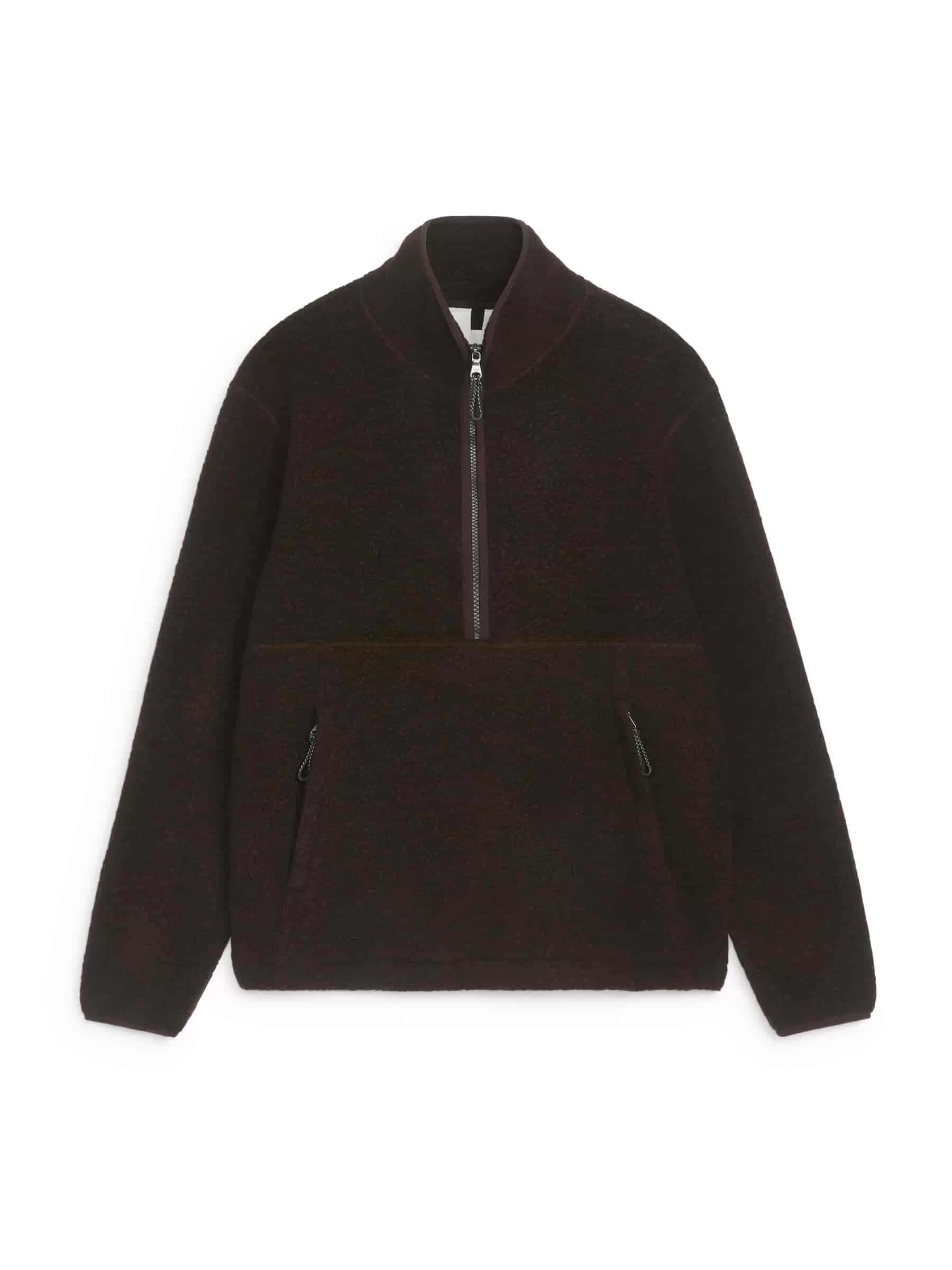 ARKE Herr Ullblandning Pile Half-Zip Brun