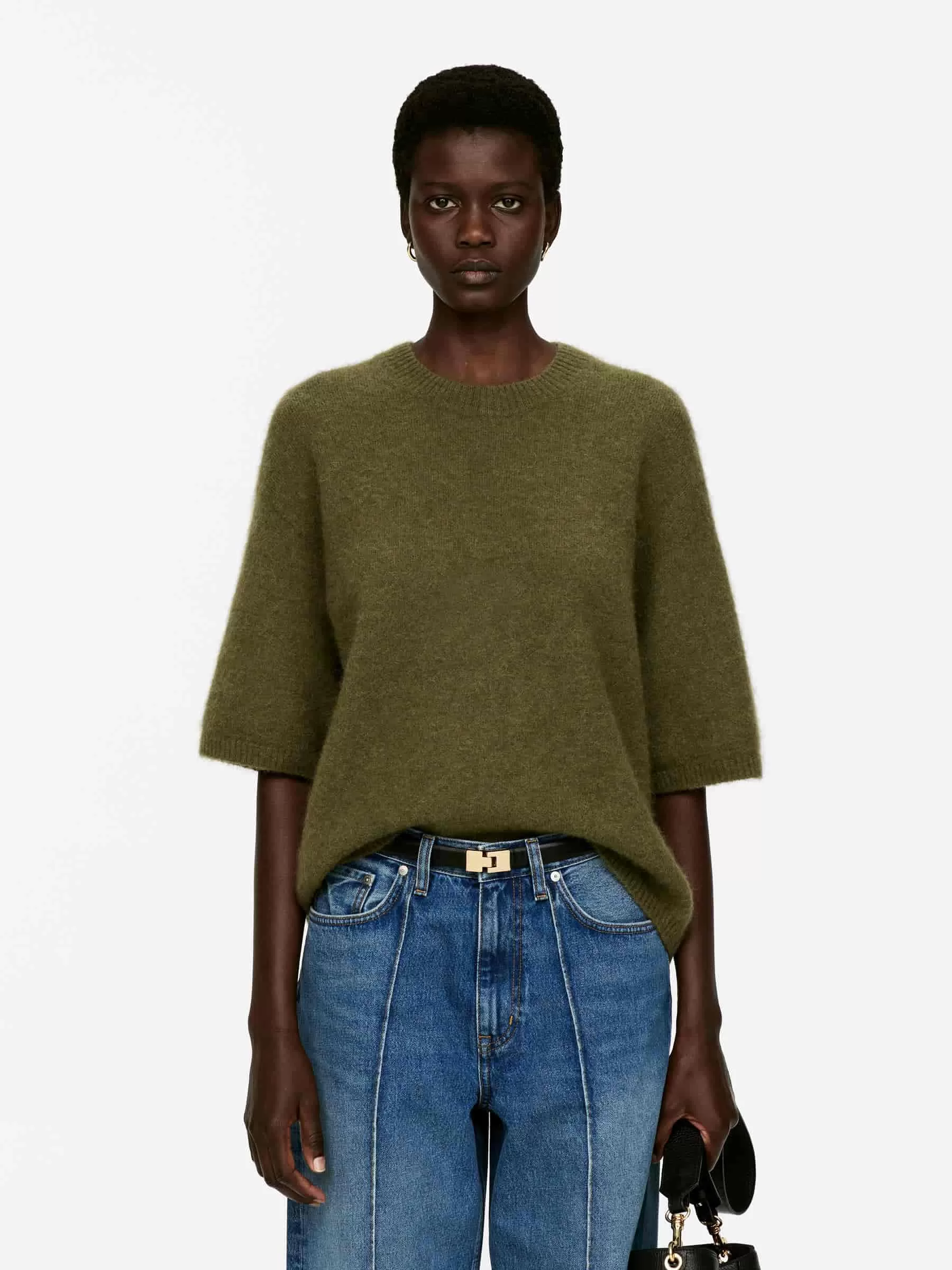 Kortärmad tröja gjord av komfortinducerande alpacka och ull. En crew-neck-stil med en lös passform. Ribbstickade detaljer detaljer om utseendet. Denna stil innehåller 31% RAS Alpaca och 31% RWS ull (TE-00047206). Produkter certifierade enligt Responsible Wool Standard (RWS) och Responsible Alpaca Standard (RAS) innehåller ull och alpackafiber från gårdar som är oberoende certifierade enligt kraven på djurskydd och markförvaltning.